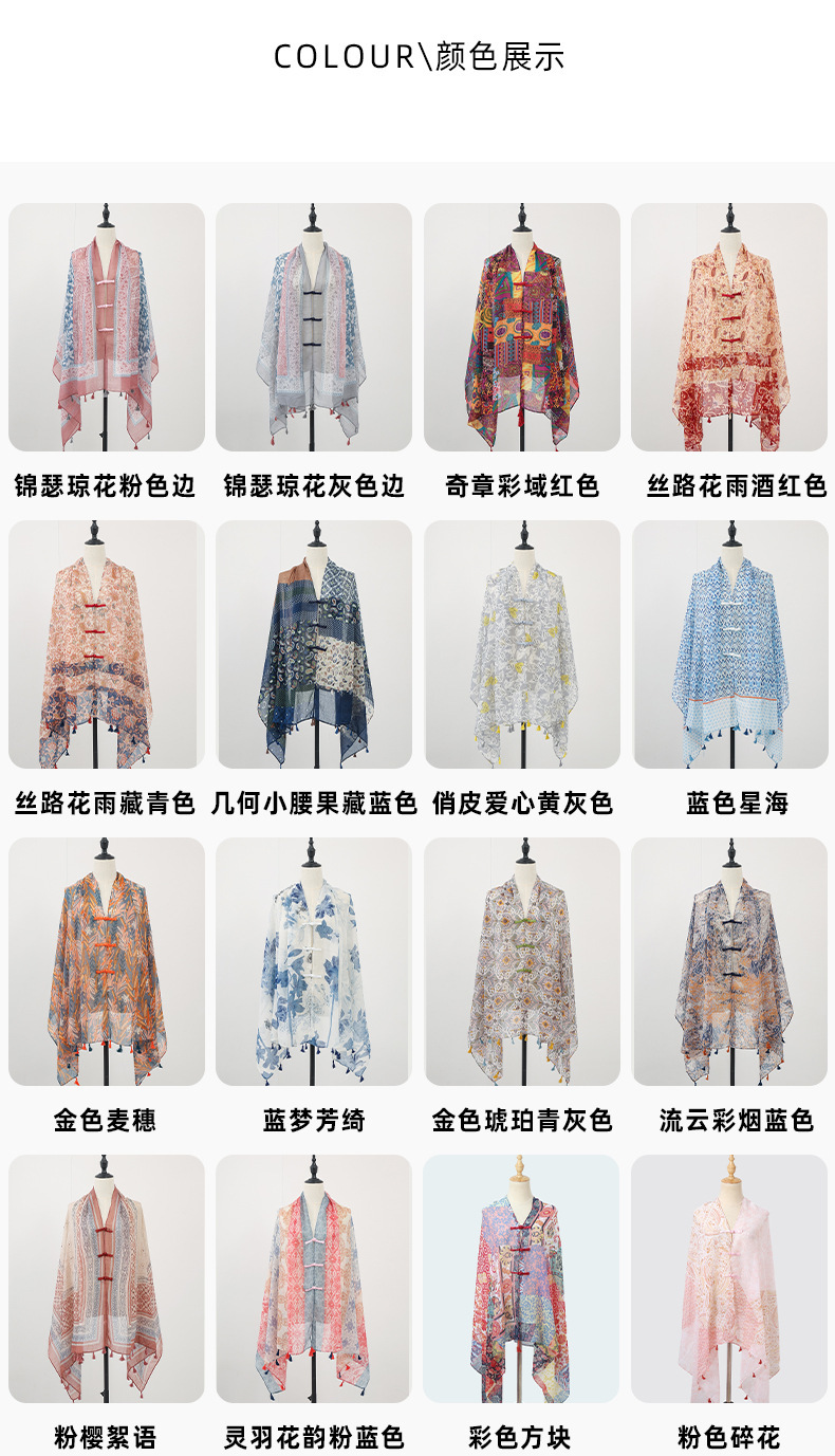 새로운 중국 스타일 버튼 숄 보헤미안 민족 스타일 문학 복고풍 면화 및 린넨 숄 여행 사진 긴 스카프스토어 가기