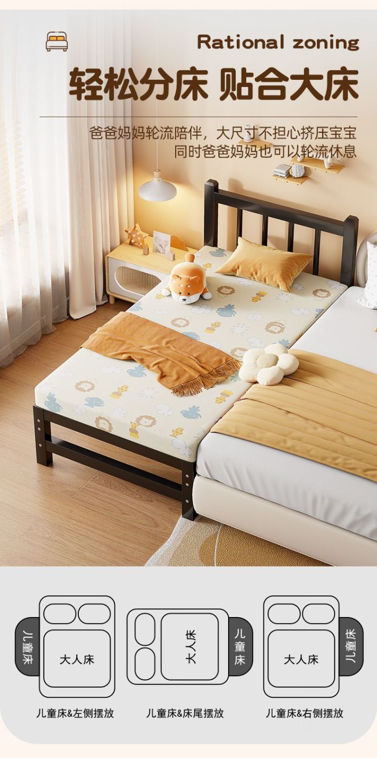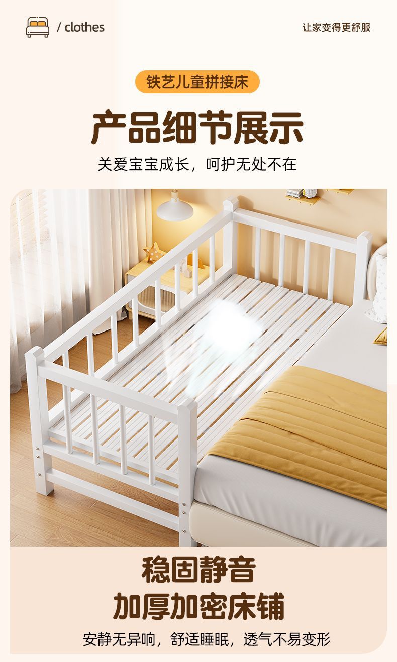 철제 어린이 접합 침대, 넓은 안전 가드 포함, 소년 소녀 싱글 침대 옆 침대, 아기 접합스토어 가기