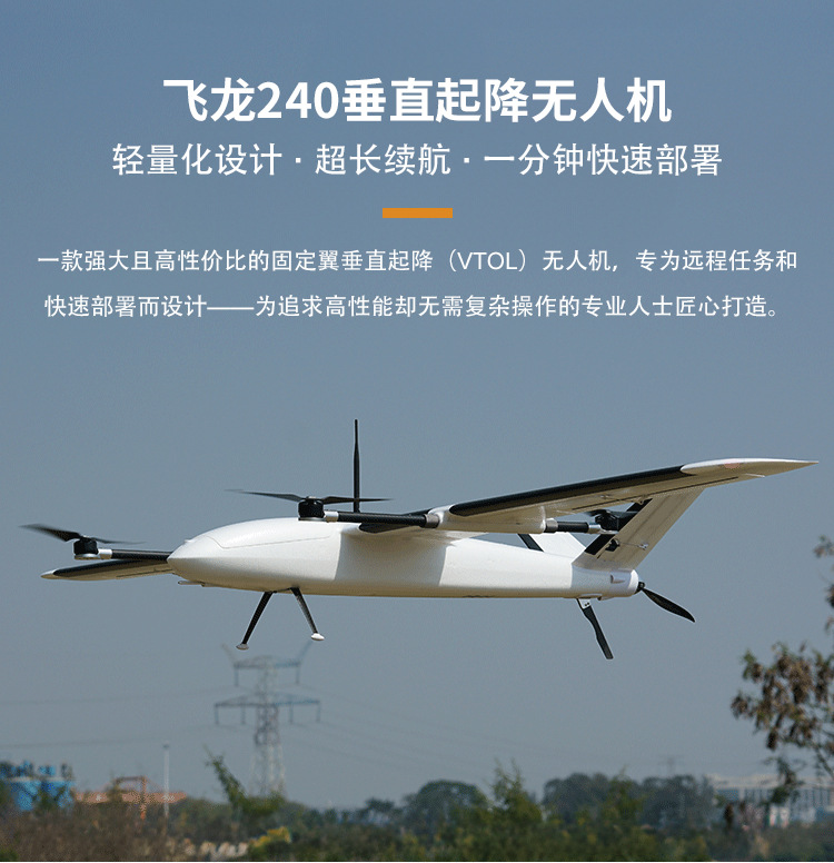 Feilong Loong240 수직 이륙 및 착륙 고정 날개 항공 사진 기계 Vtol UAV 매핑 및 측량 복합 날개 항공기스토어 가기