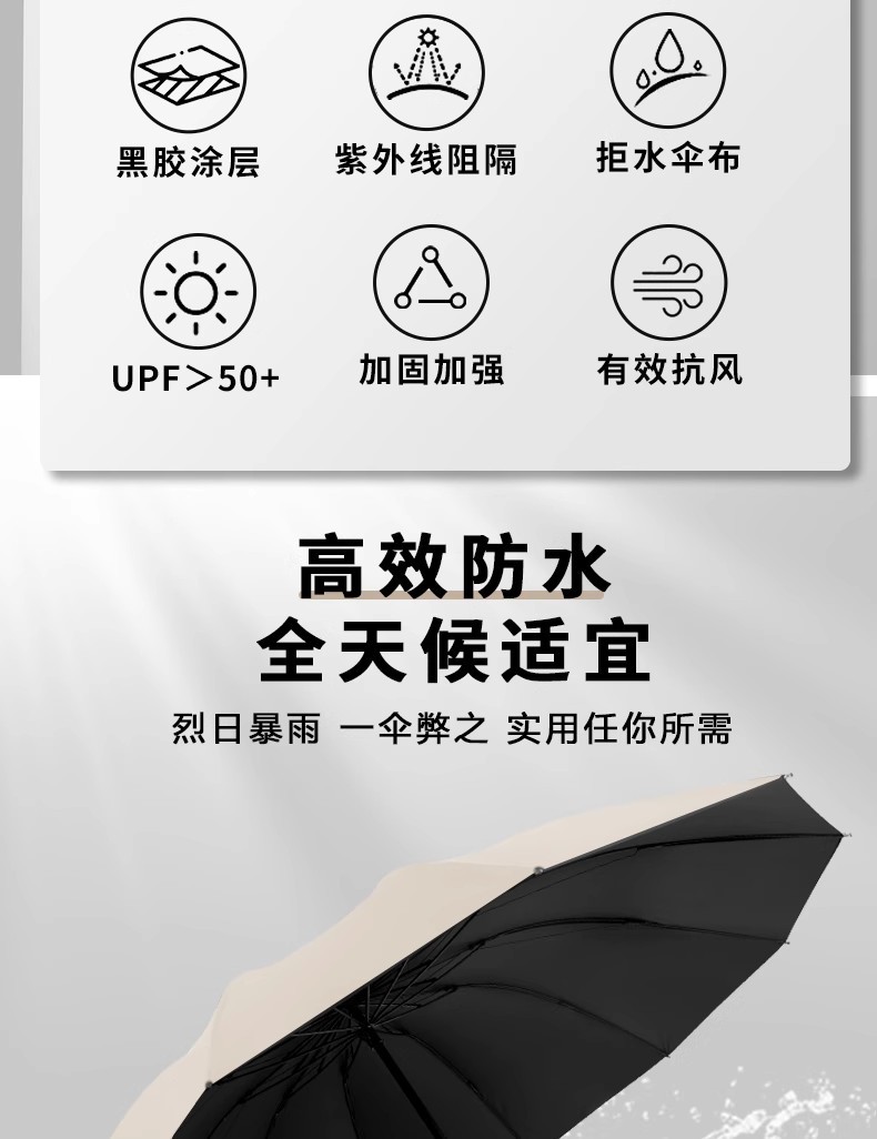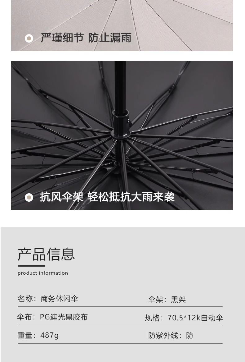 • LED 자동 접이식 우산--검정색