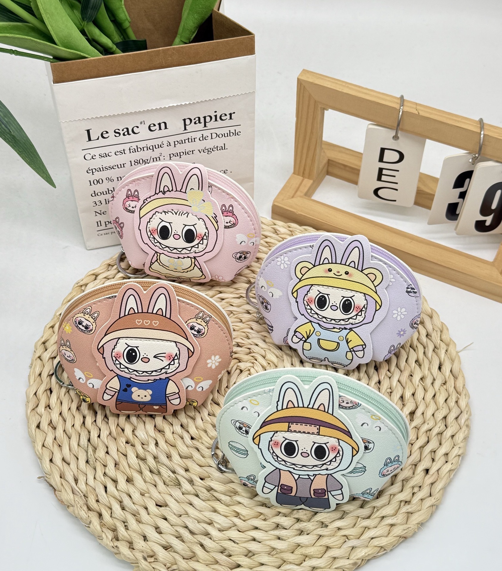 라부부 조개 모양 동전 지갑 열쇠고리 립스틱 가방 장식 어린이 미니 가방 작은 장식품 열쇠고리 도매