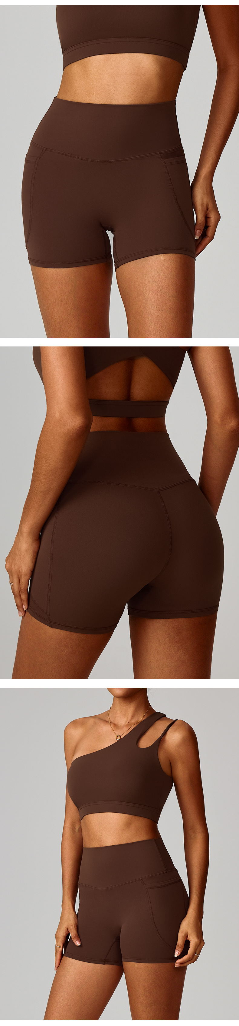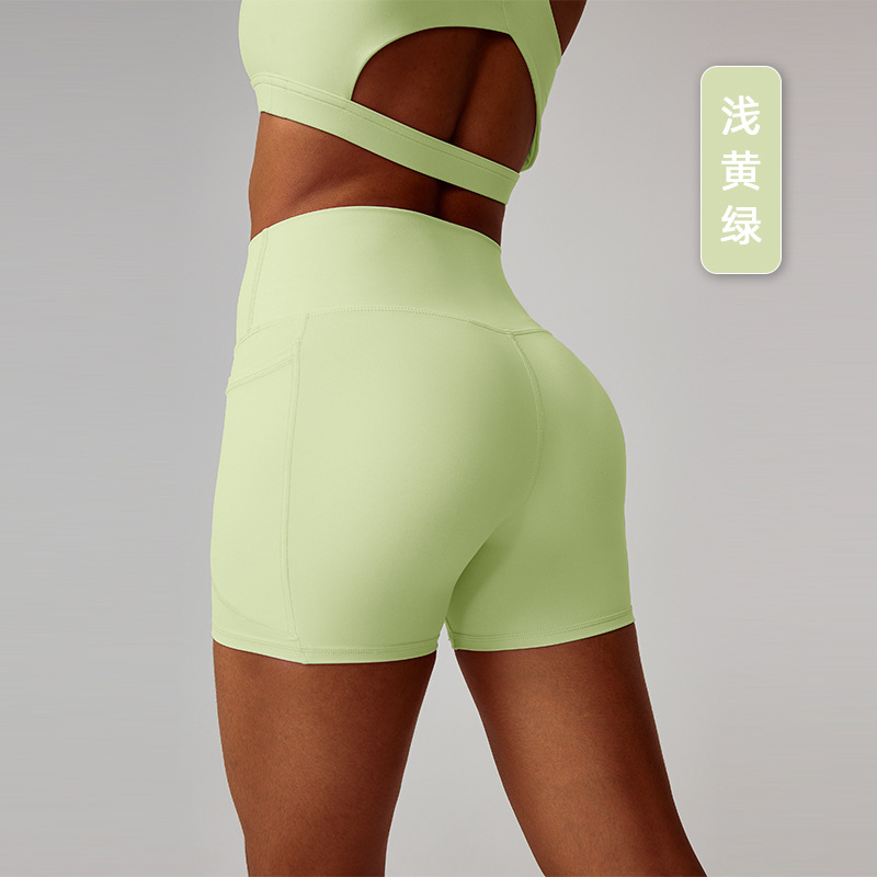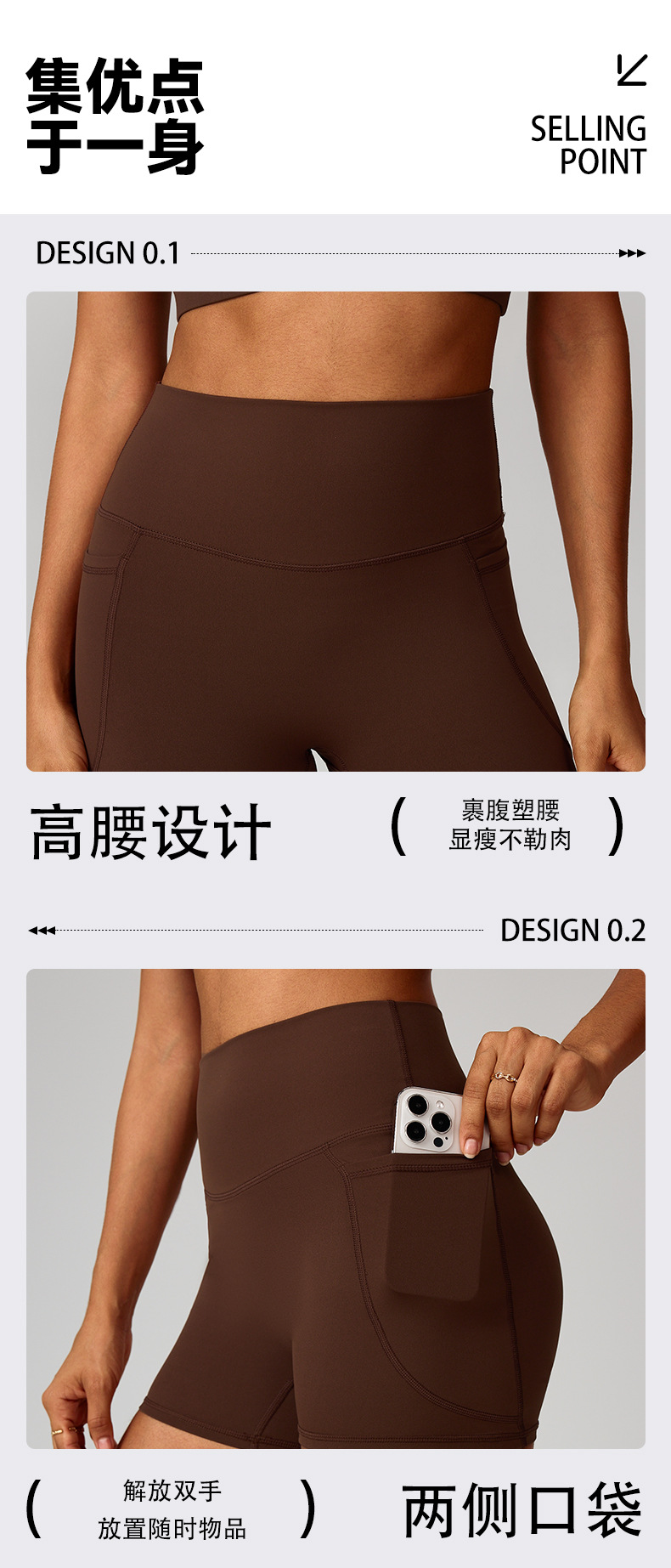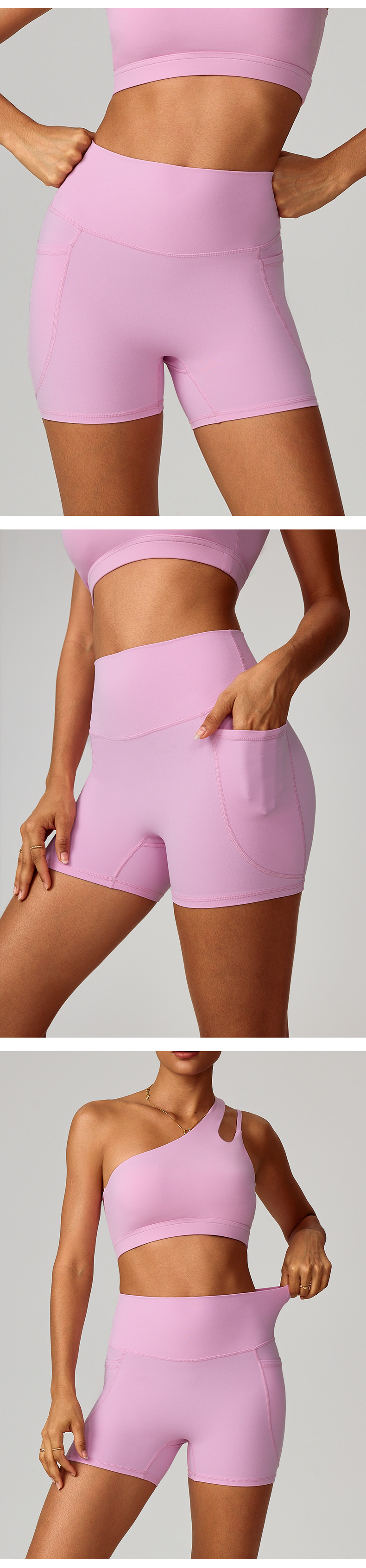 신상 여름 속건 누드감 스포츠 반바지 하이웨이스트 타이트 요가 팬츠 포켓 통기성 러닝 피트니스 반바지 6425