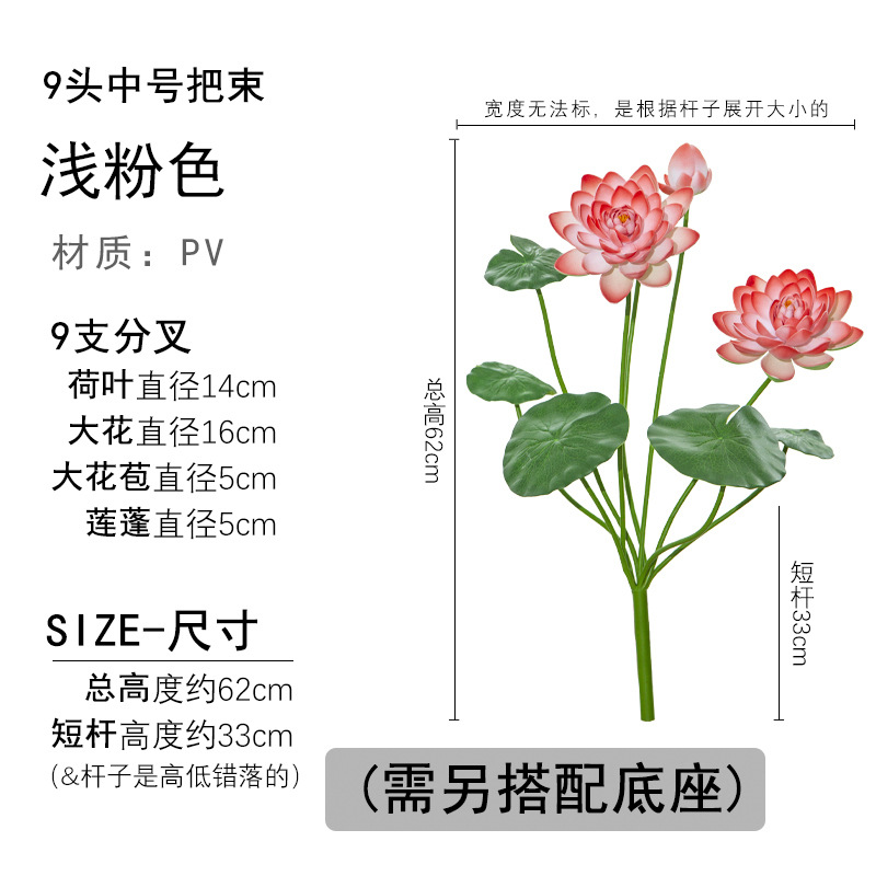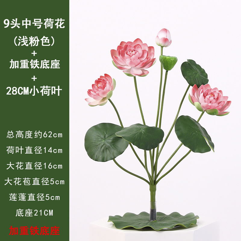 • 연꽃 연분홍 9개 + 철제 무게 베이스 + 작은 연잎
