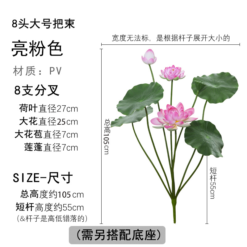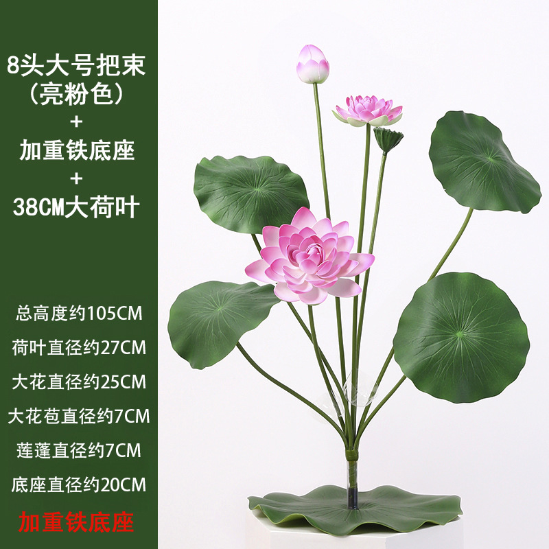 • 8개의 큰 연꽃 밝은 핑크 + 큰 연잎 베이스