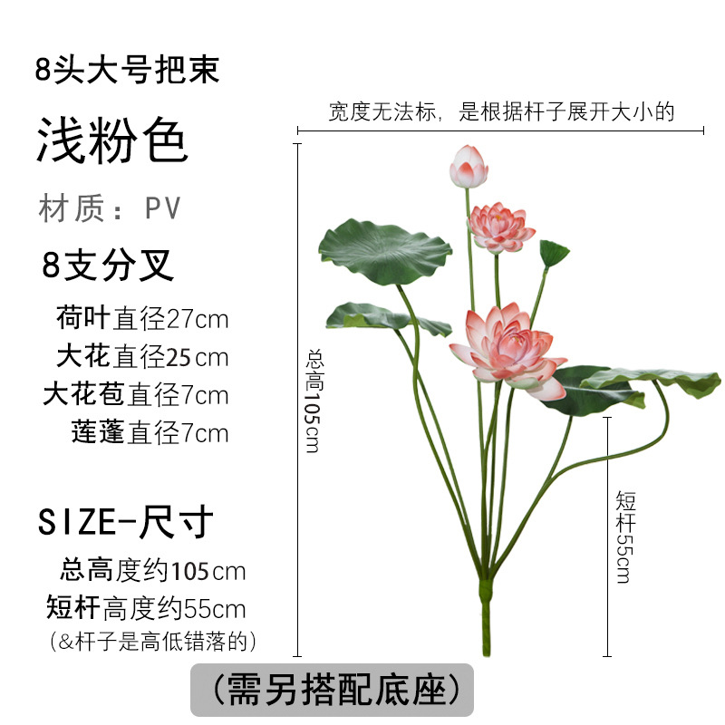 • 연분홍 8개 + 무게 있는 철제 베이스 + 큰 연잎