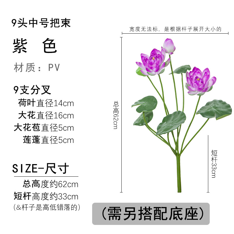 • 보라색 중형 연꽃 9개, 꽃 2개, 봉오리 1개, 연꽃 1개