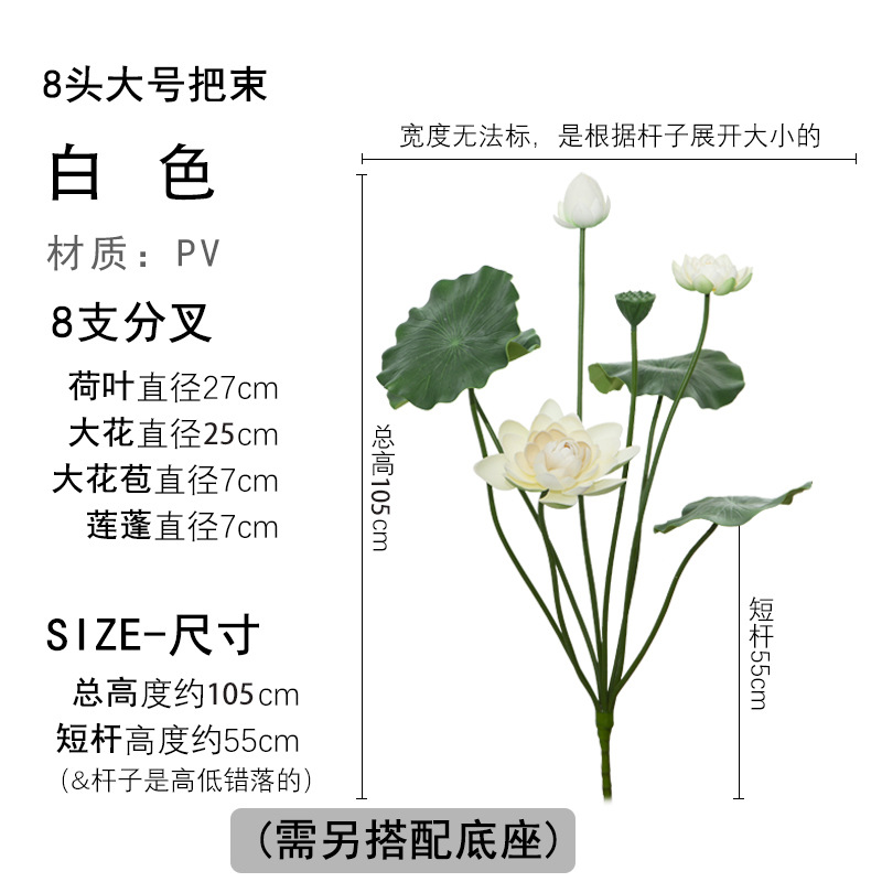 • 8개의 큰 연꽃 흰색 + 큰 연잎 베이스