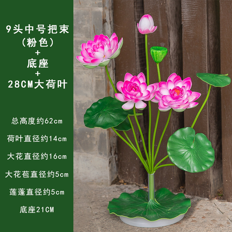 • 9 중형 로터스 핑크 + 작은 연잎 베이스