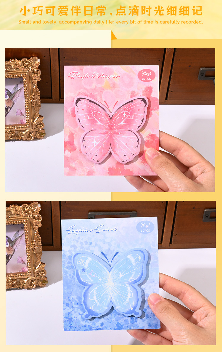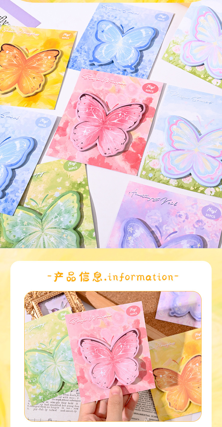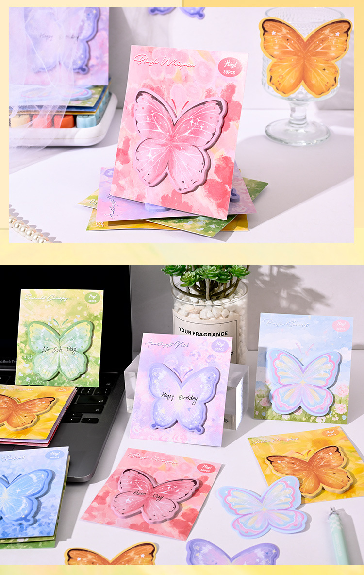 귀여운 나비 포스트잇 스티커 ins 스타일 고급스러운 스티커 N회 붙여넣기 가능 수첩 소재 장식 스티커