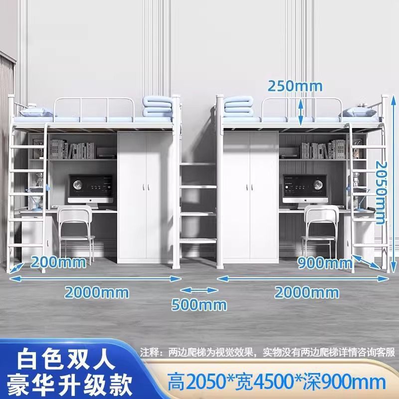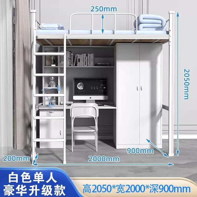 침대와 테이블 조합 침대 대학 기숙사 철제 이층 침대 위에 빈 싱글 침대 직원 아파트 침대 강철