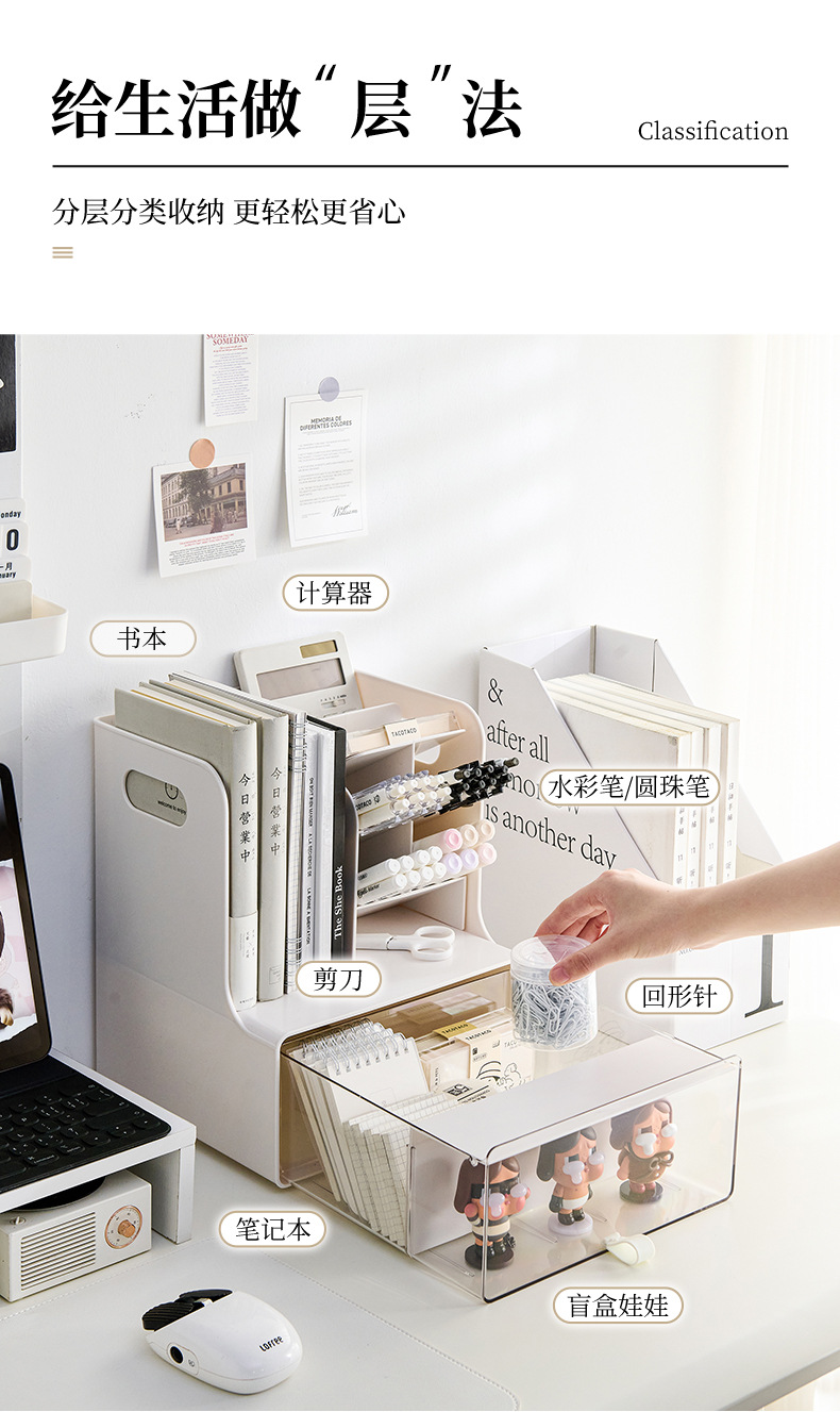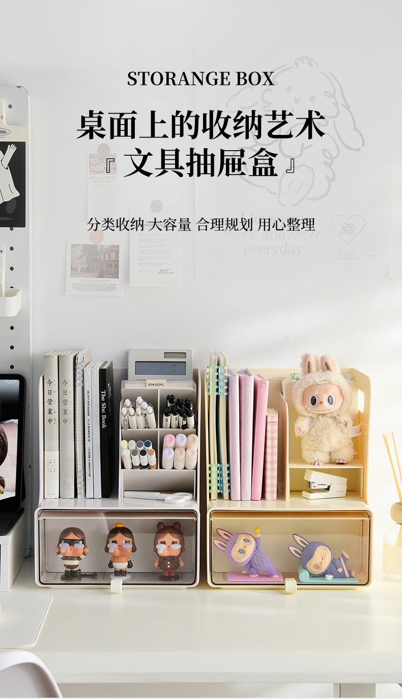 서랍형 수납함 학생용 책상 책 문구류 수납함 데스크탑 다기능 방진 경사형 수납함
