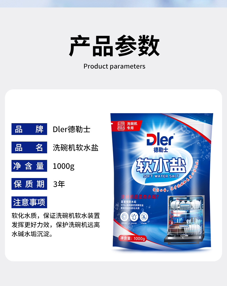 물때를 예방하고 접시를 밝게 해주는 Dler 식기세척기 특수소금, 물때를 깨끗하게 해주는 연수소금 특수세제