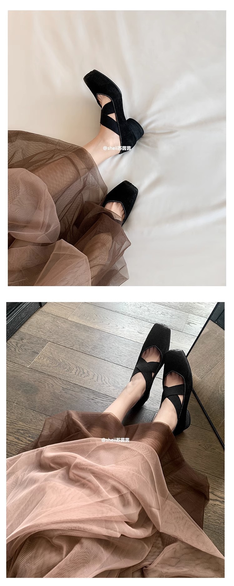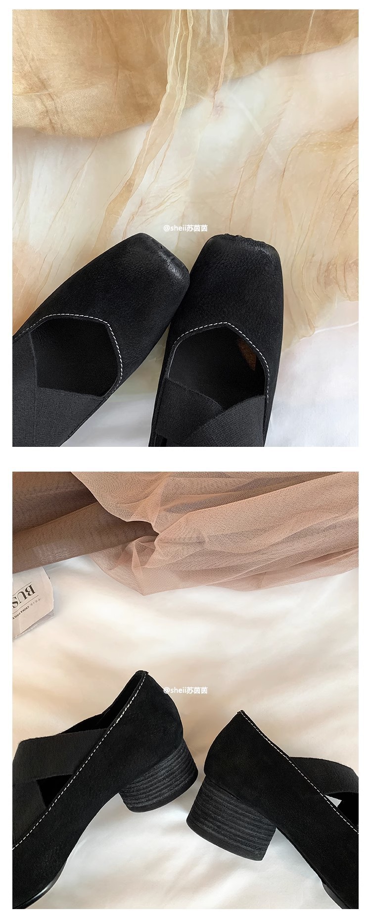 고급 소가죽 버전~돼지코 스퀘어토 컬러 레트로 메리제인 크로스 스트랩 두꺼운 굽 발레슈즈스토어 가기