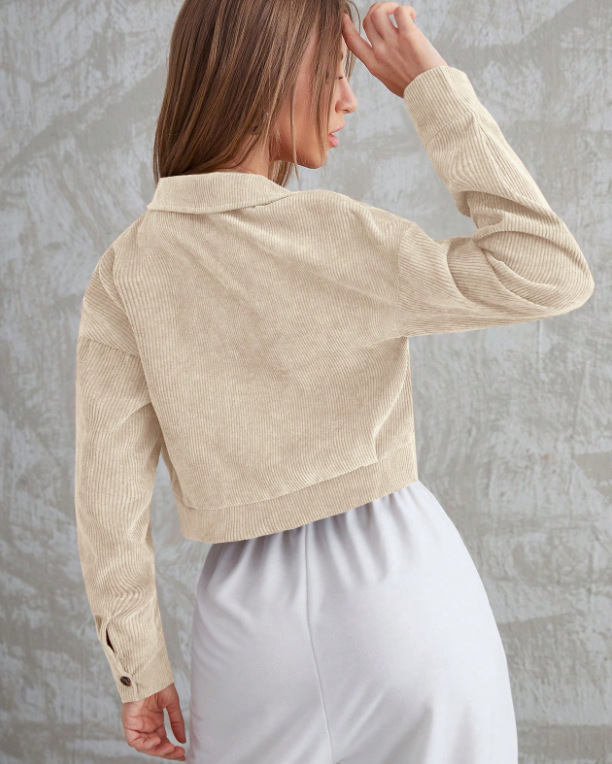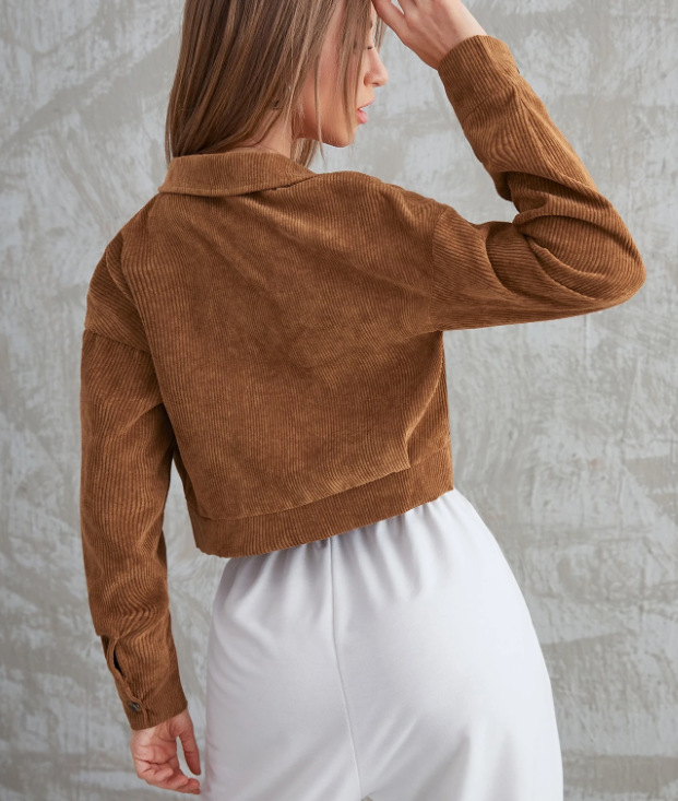 유럽과 미국의 여성 의류 코듀로이 플랩 포켓 버튼 짧은 캐주얼 재킷