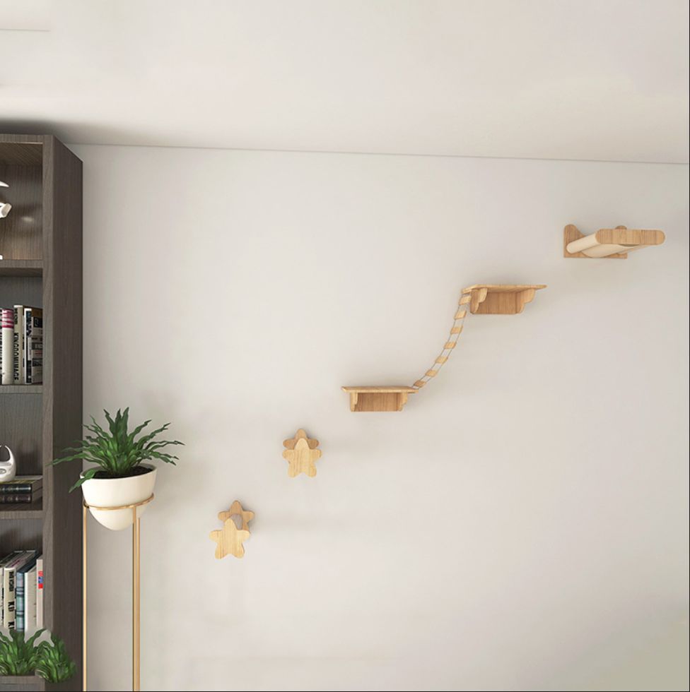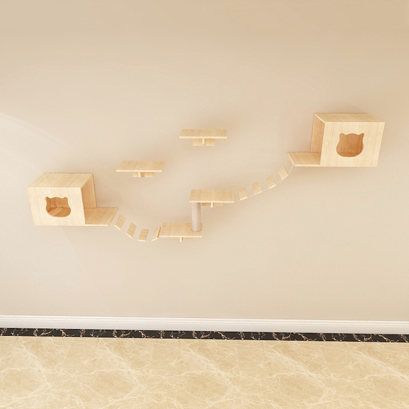 귀여운 고양이 벽걸이형 DIY 고양이 클라이밍 프레임, 벽걸이형 원목 고양이 집, 고양이 나무 일체형 고양이 프레임, 공간 절약형