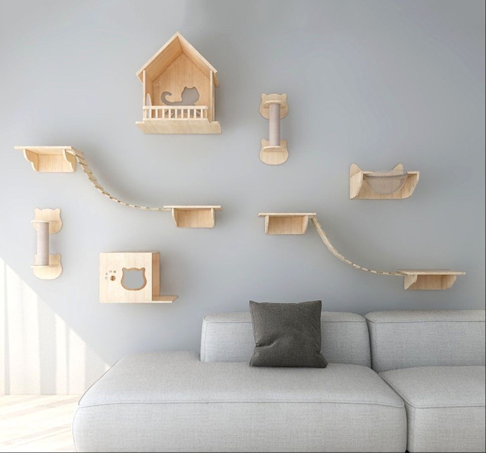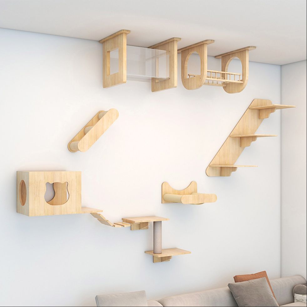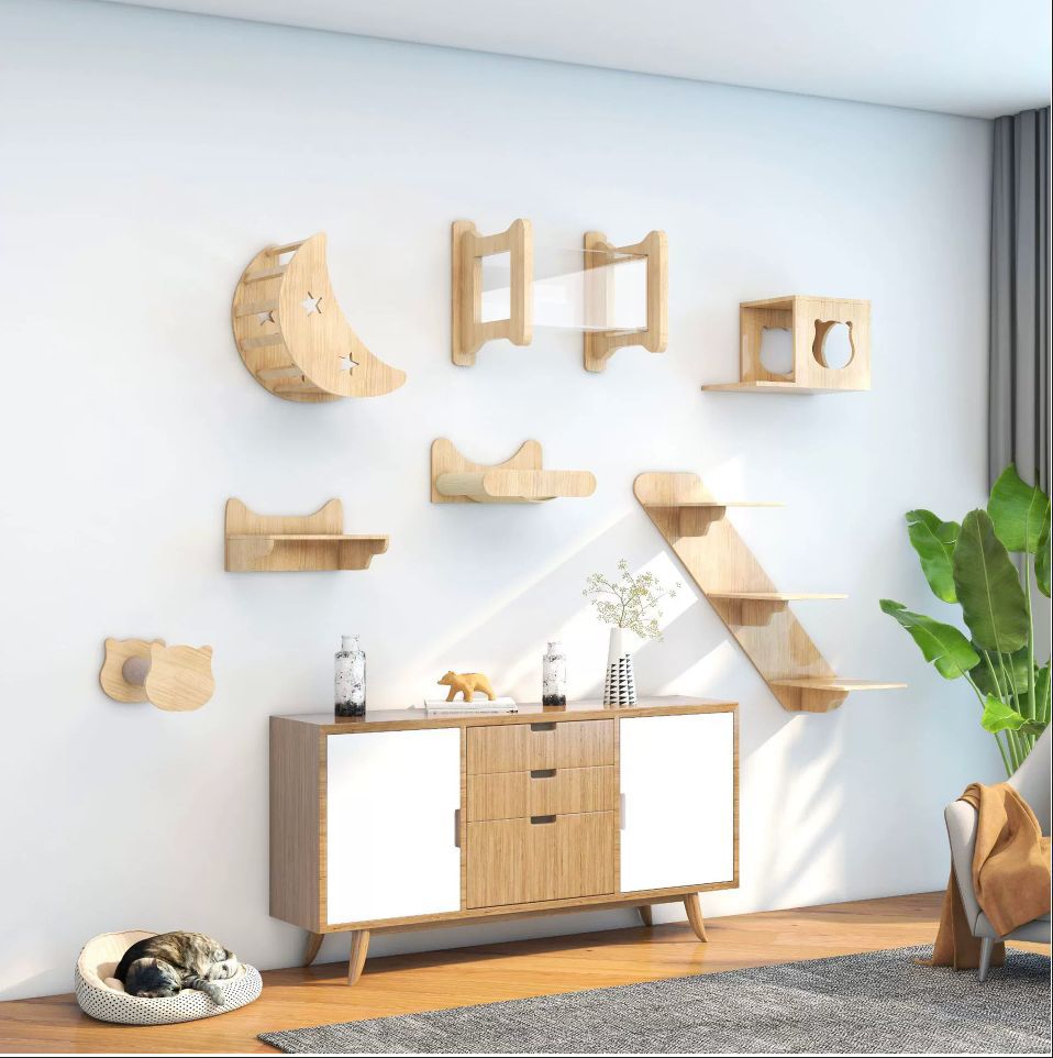 귀여운 고양이 벽걸이형 DIY 고양이 클라이밍 프레임, 벽걸이형 원목 고양이 집, 고양이 나무 일체형 고양이 프레임, 공간 절약형스토어 가기