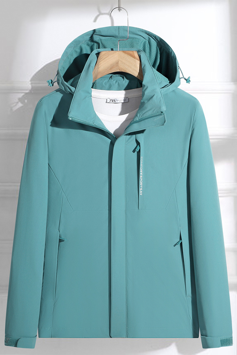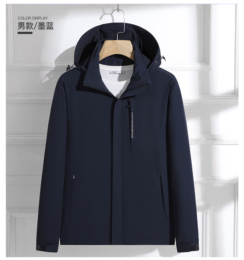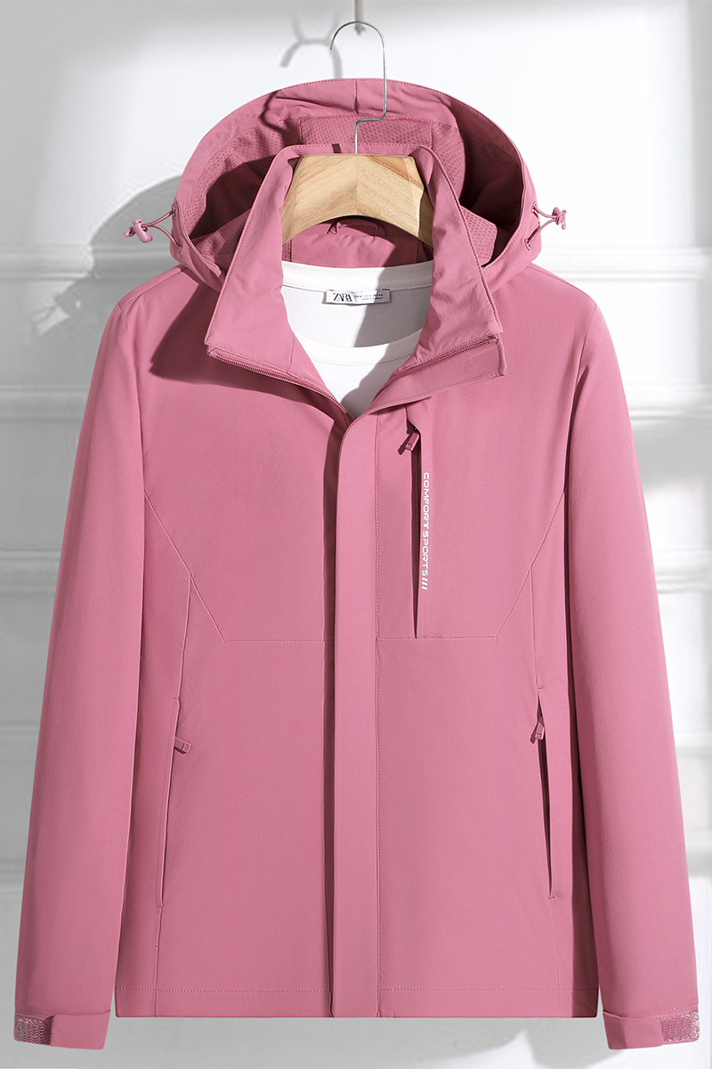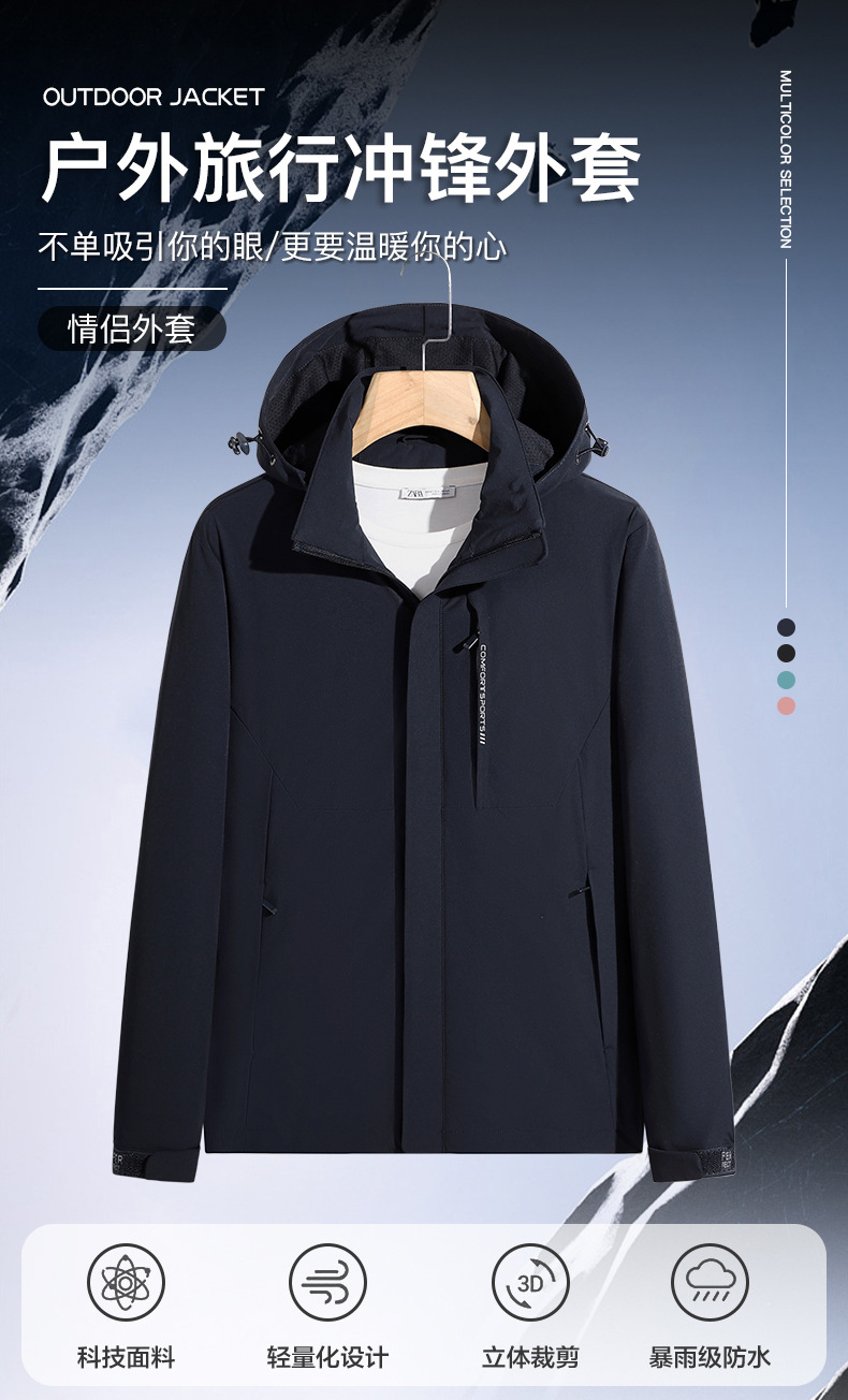국경 간 도매 커플 야외 여행 충전 재킷 편지 방풍 및 방수 후드 재킷 남성용 따뜻하고 통기성