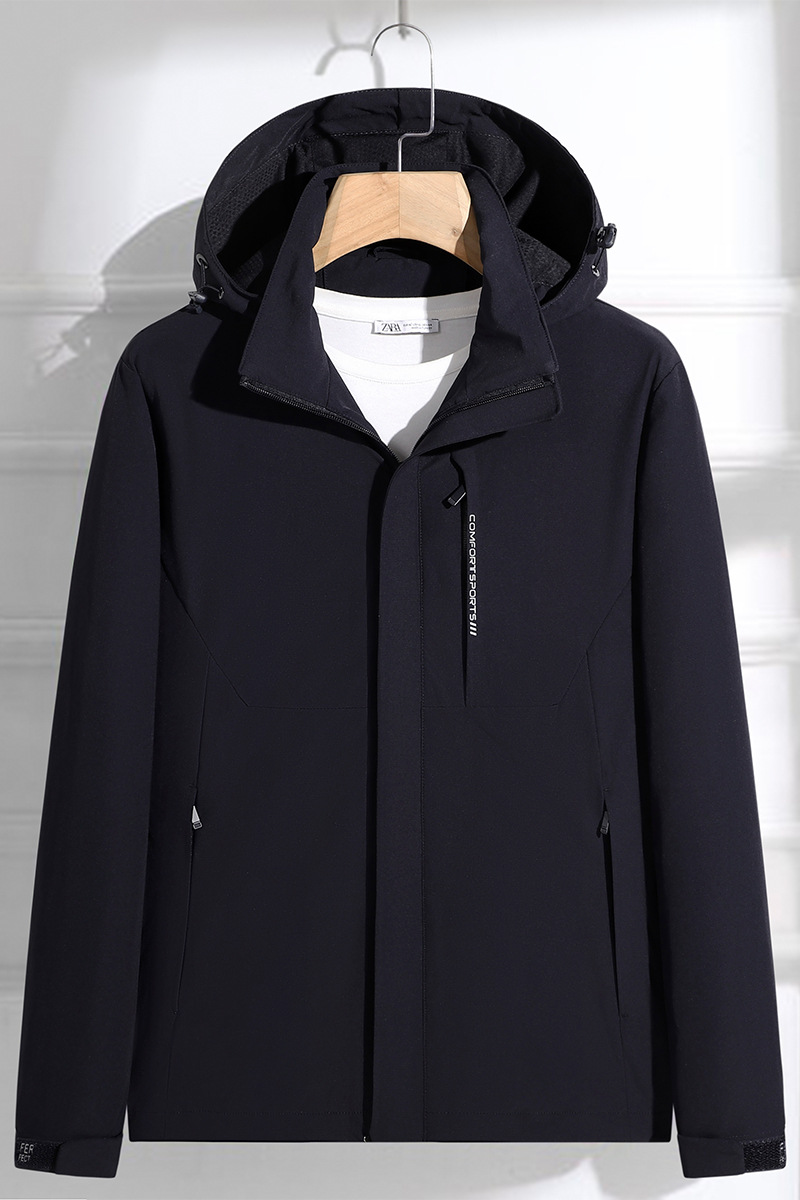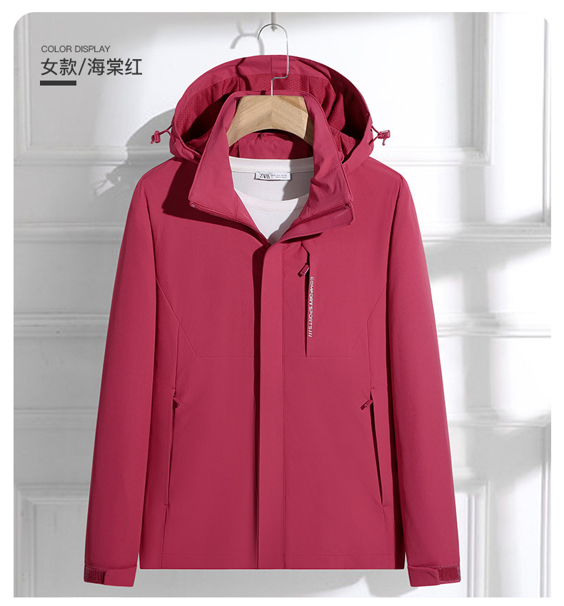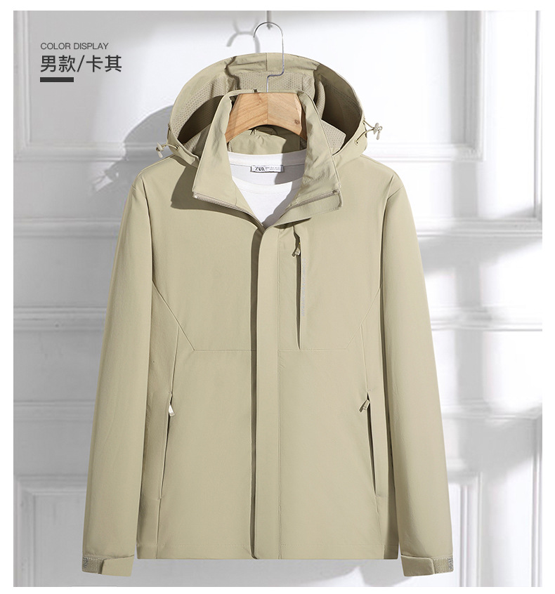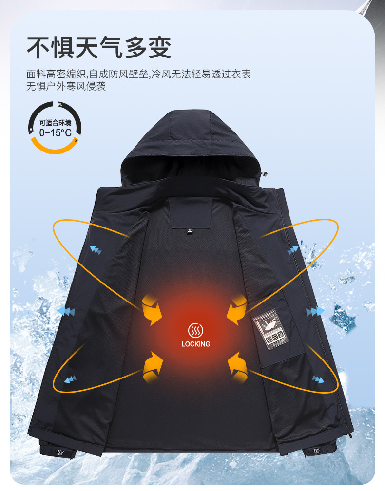 국경 간 도매 커플 야외 여행 충전 재킷 편지 방풍 및 방수 후드 재킷 남성용 따뜻하고 통기성