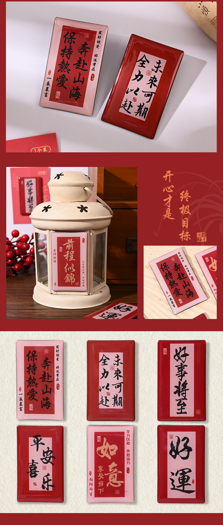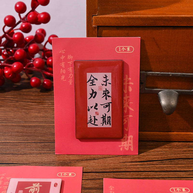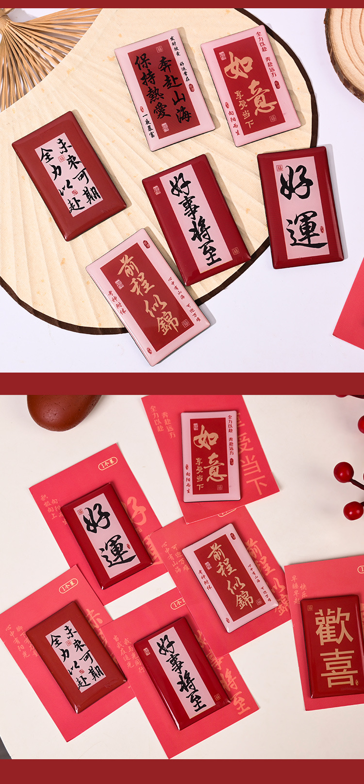 자석 냉장고 자석, 모든 것이 순조롭게 진행됩니다 시리즈, 창의적인 영감을 주는 텍스트, 중국 스타일 서예, 축제 자석 스티커, 6가지 옵션