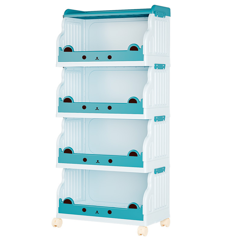 어린이 책장 홈 아기 그림책 선반 장난감 보관함 접이식 바퀴 달린 이동식 간단한 책장 보관함