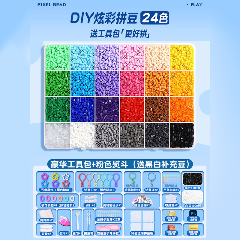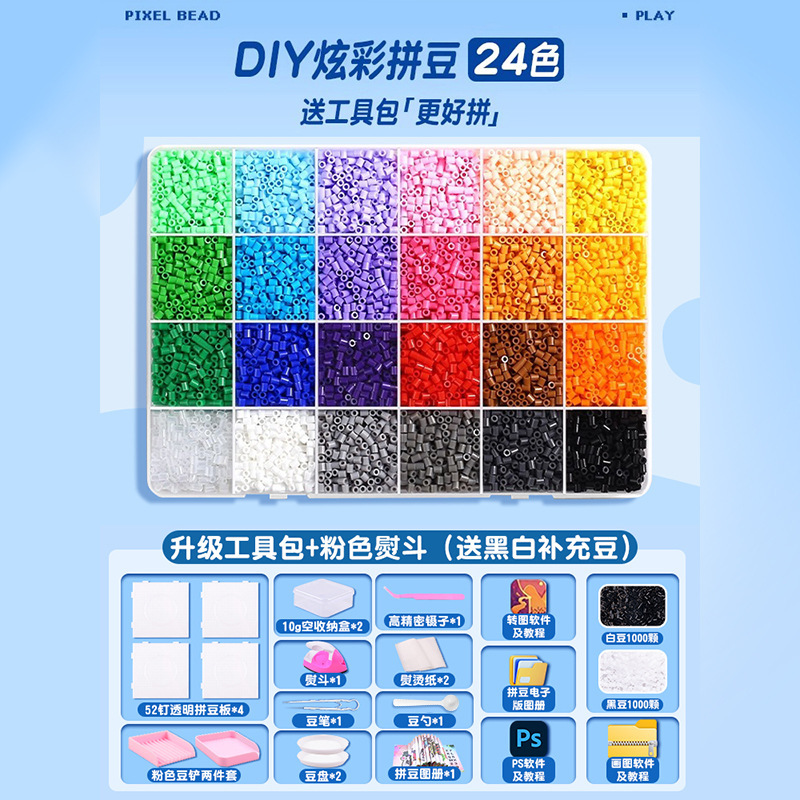• 24가지 색상/무료 업그레이드 도구 키트 + 다리미 + 무료 흑백 콩 2000개