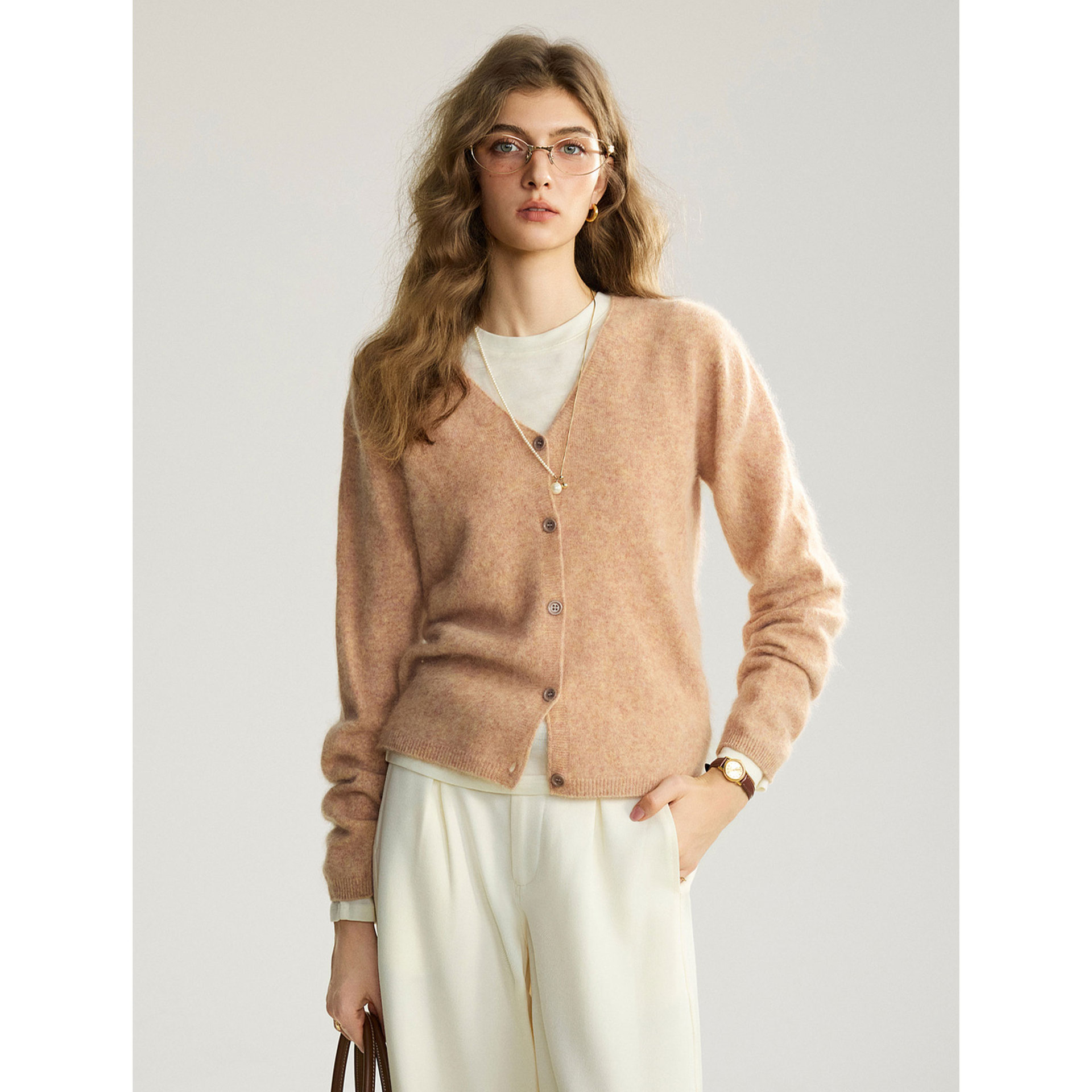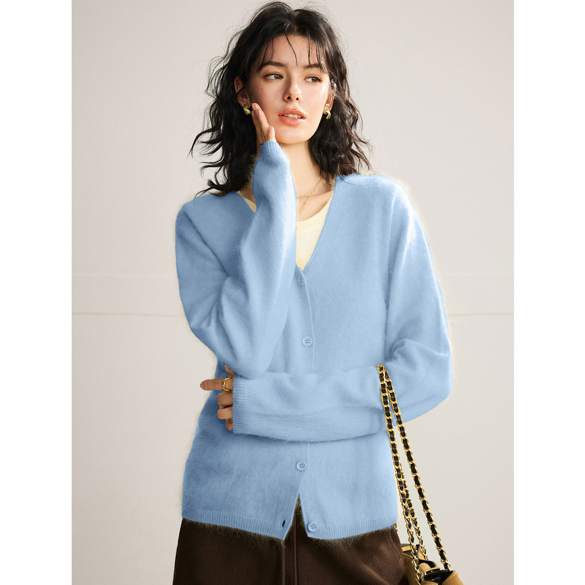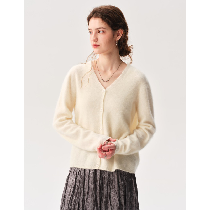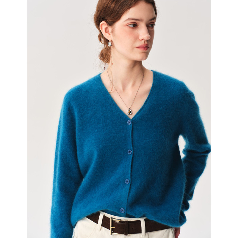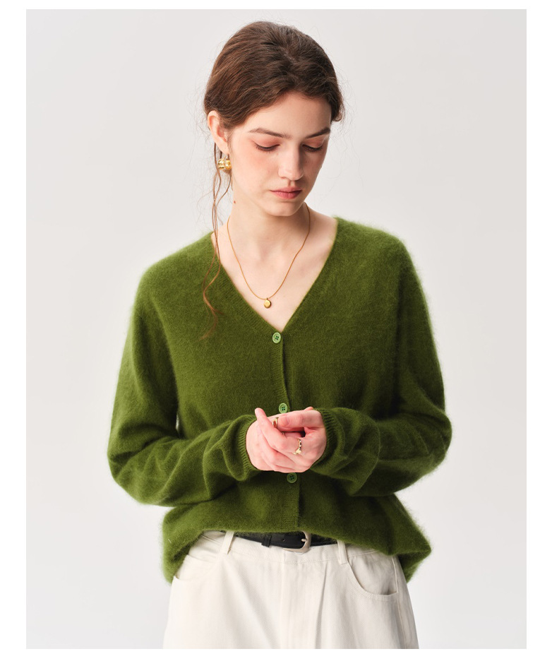 롱타이 캐시미어 울 브이넥 니트 여성용 2025 가을 겨울 신상 기모 우아한 카디건 스웨터스토어 가기
