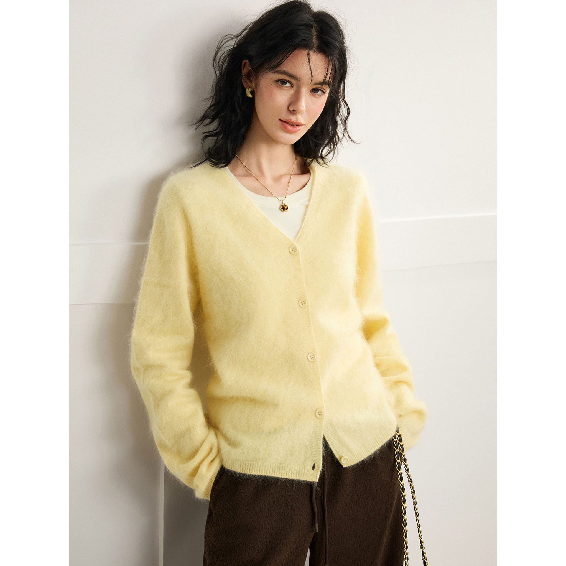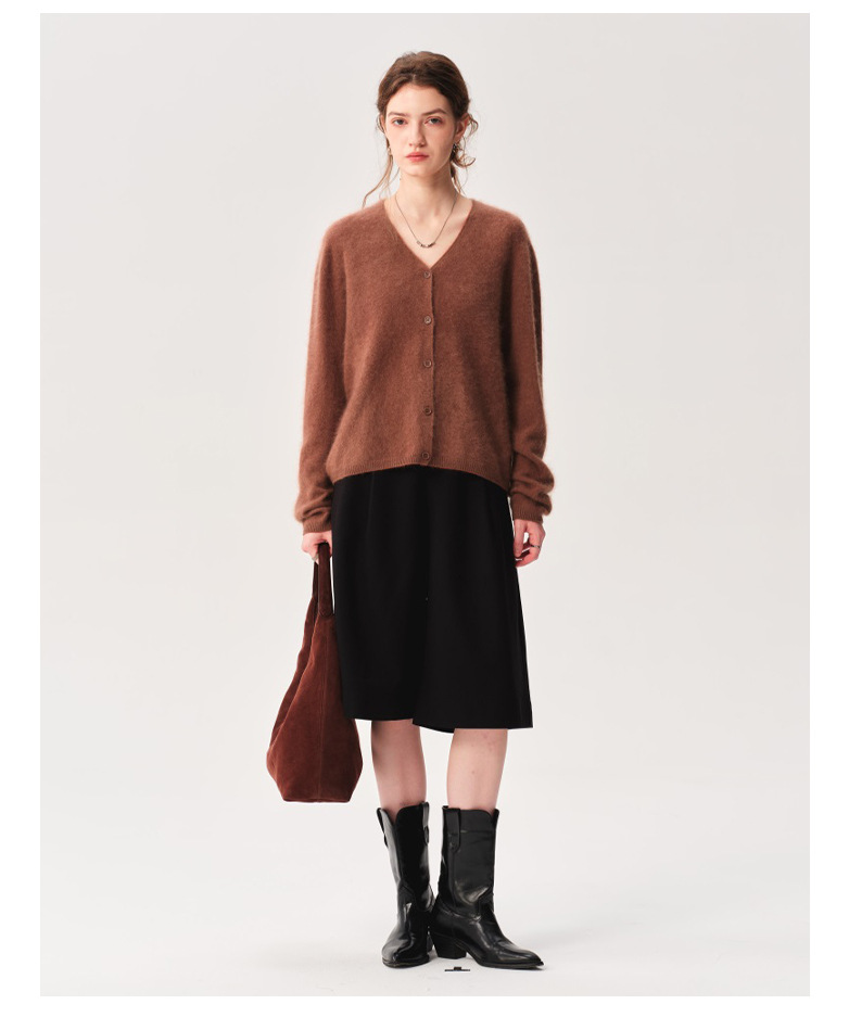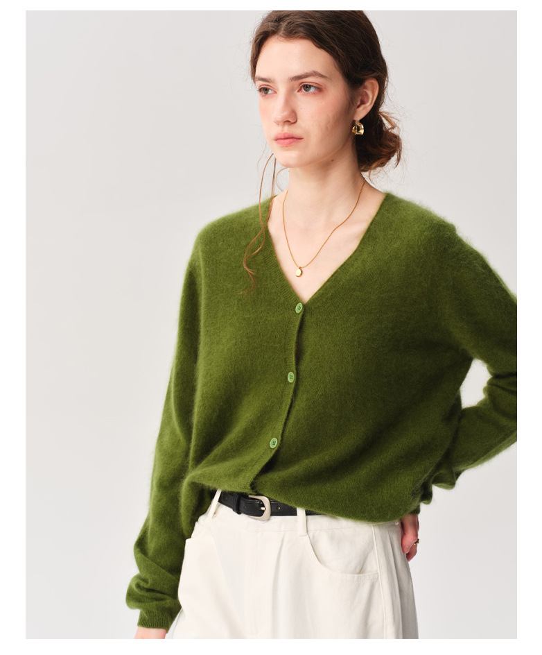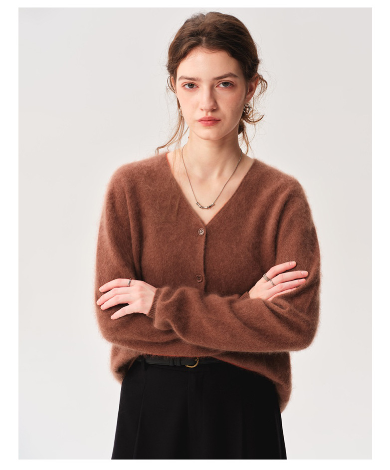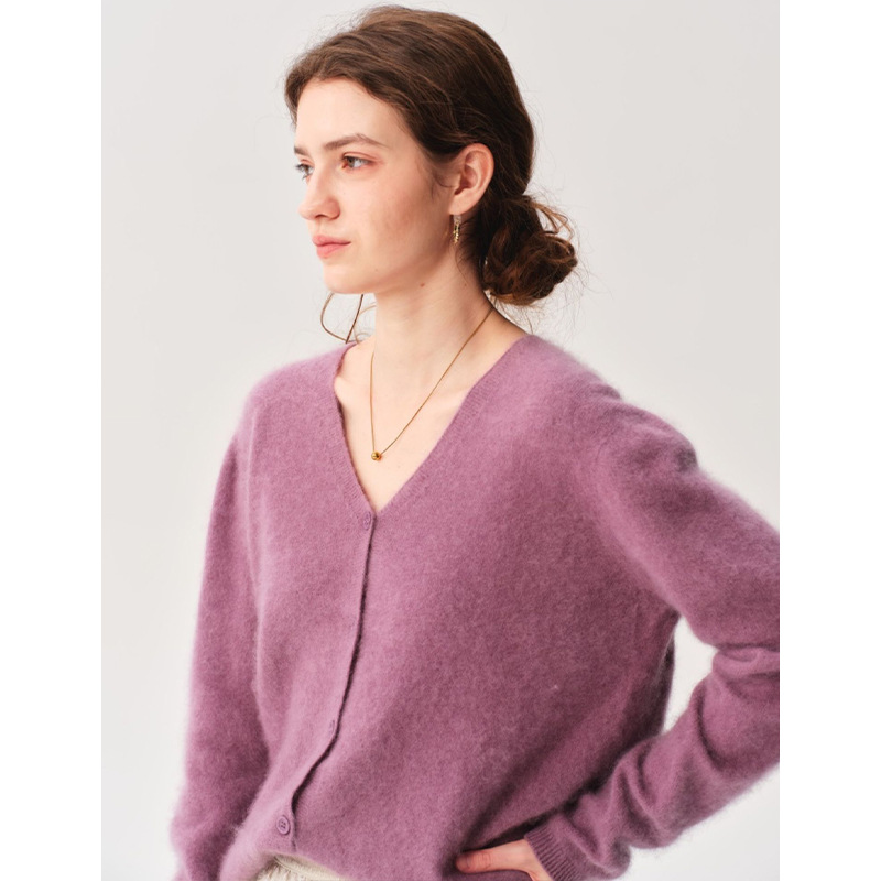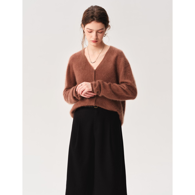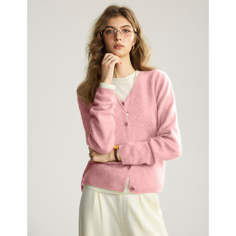 롱타이 캐시미어 울 브이넥 니트 여성용 2025 가을 겨울 신상 기모 우아한 카디건 스웨터스토어 가기