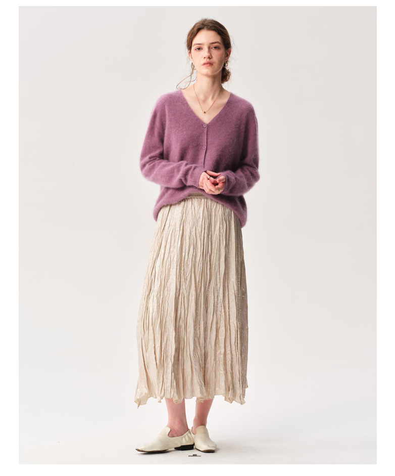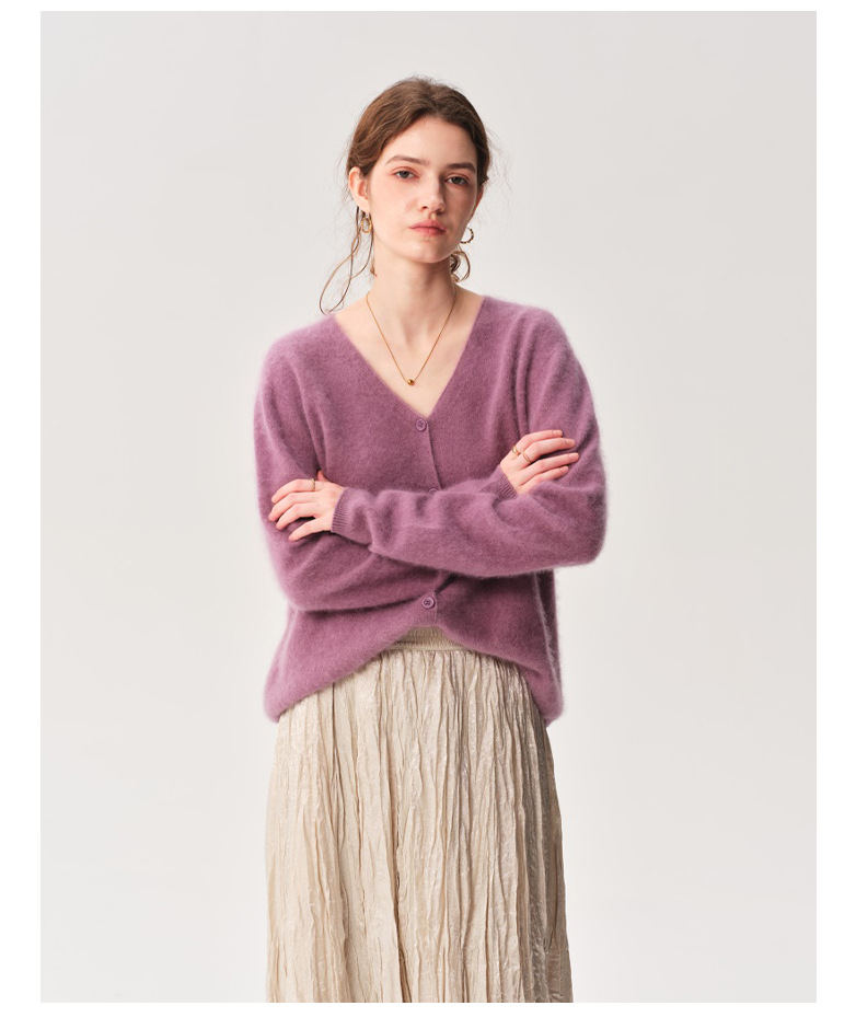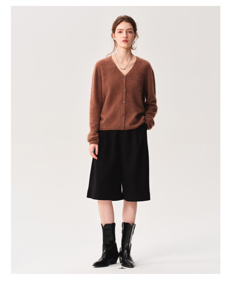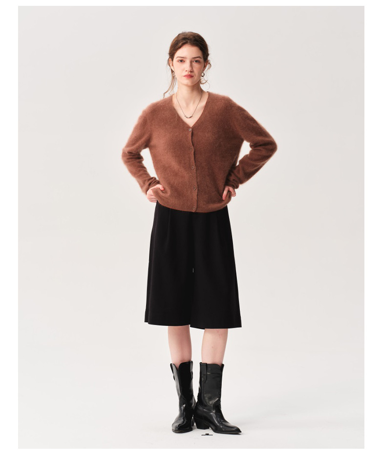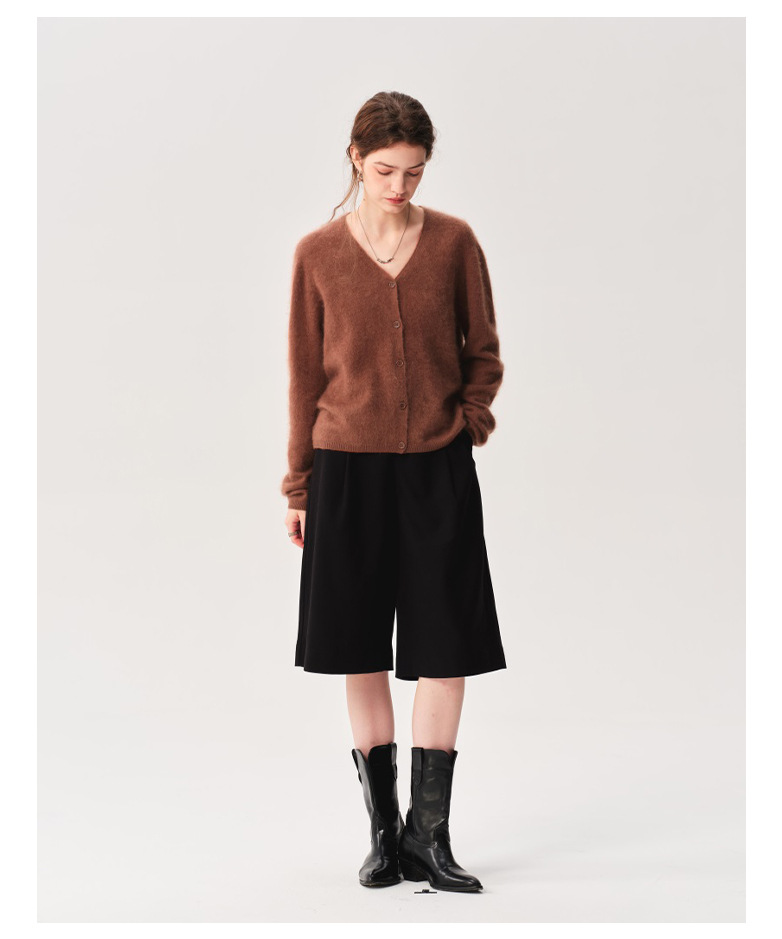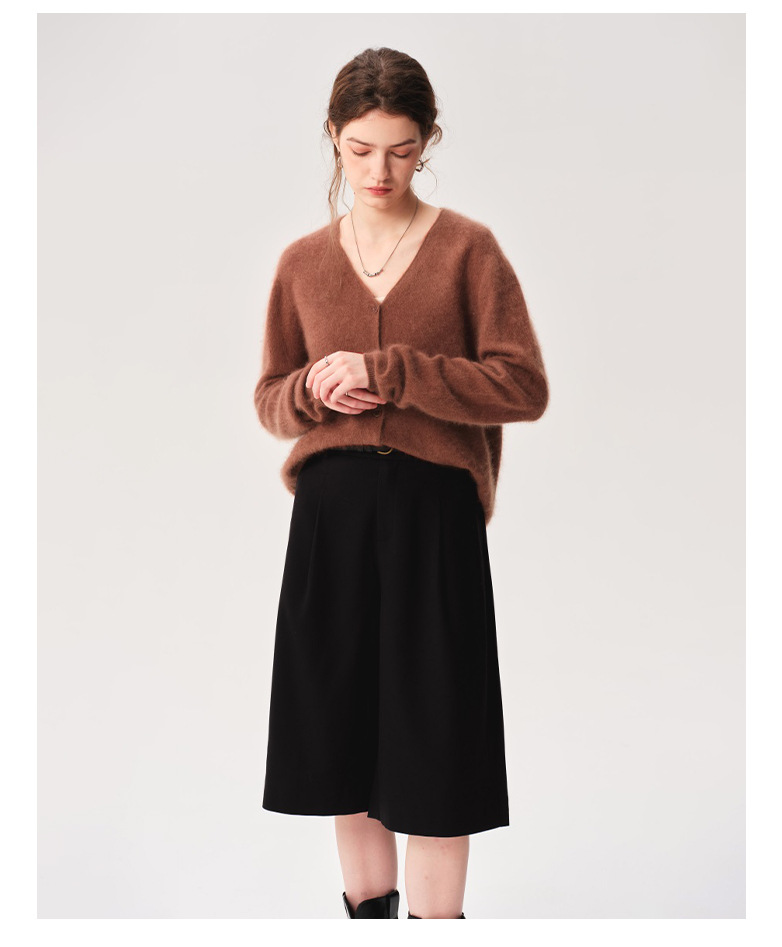 롱타이 캐시미어 울 브이넥 니트 여성용 2025 가을 겨울 신상 기모 우아한 카디건 스웨터스토어 가기
