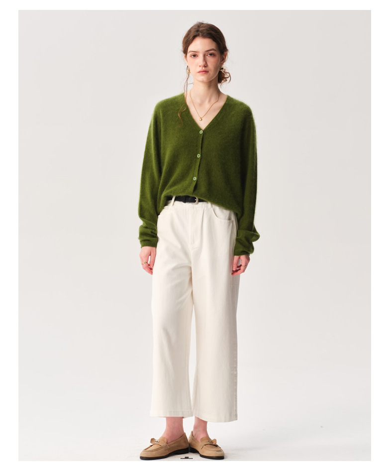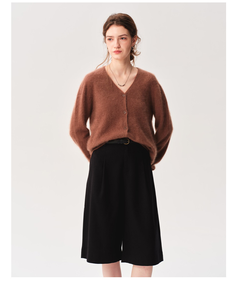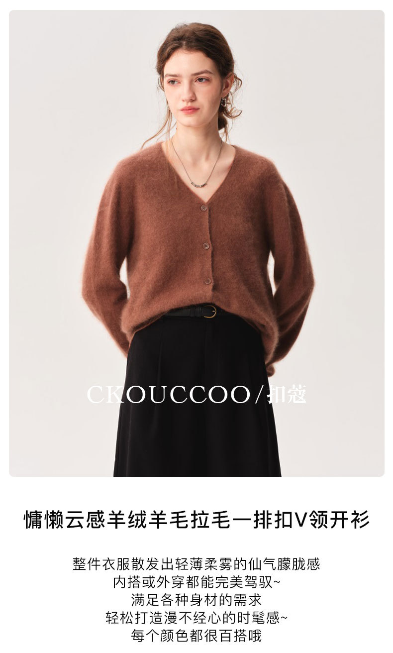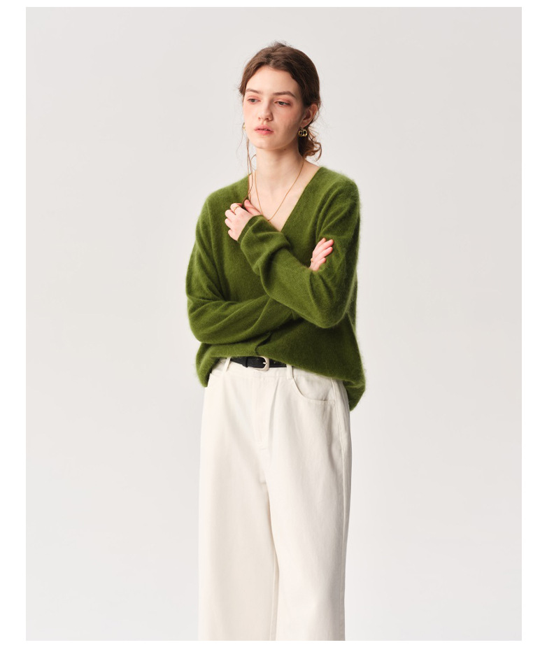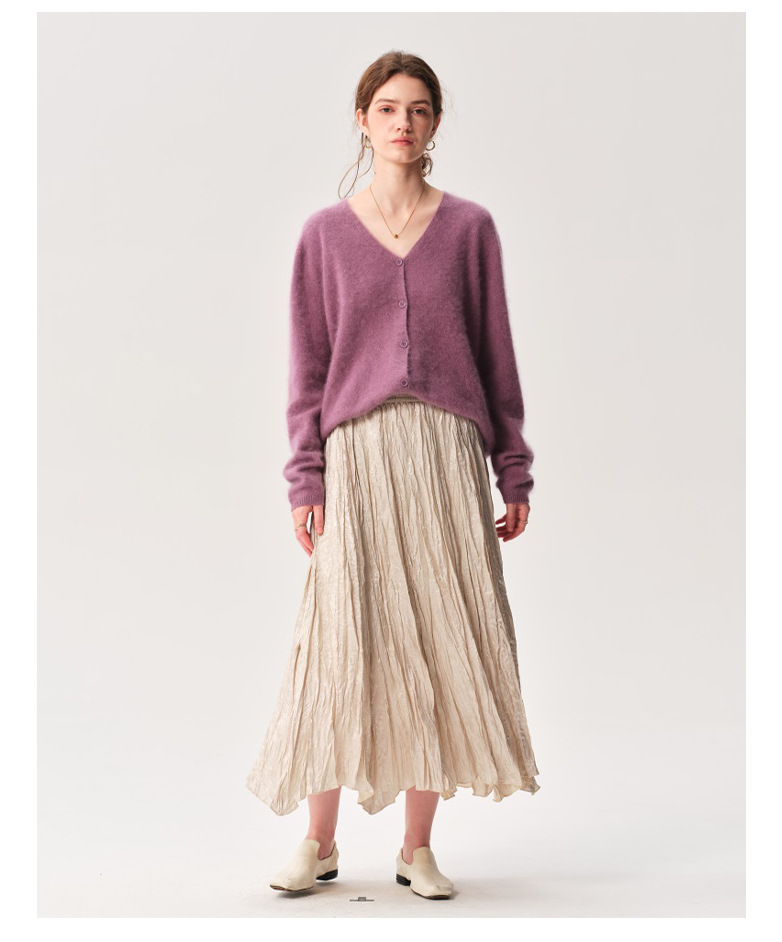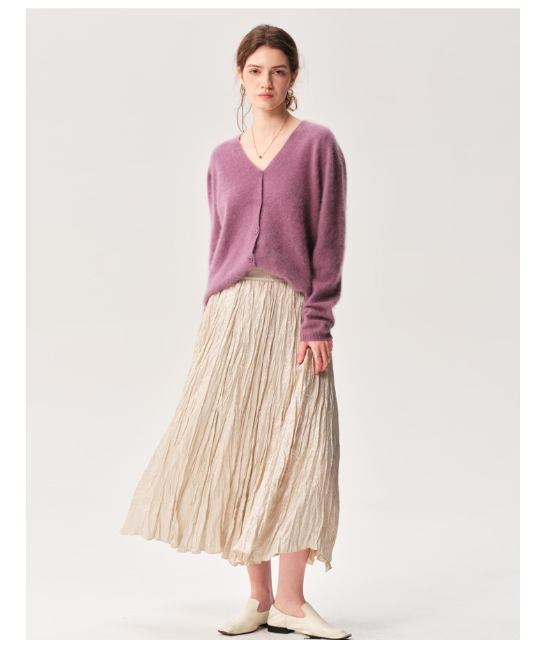 롱타이 캐시미어 울 브이넥 니트 여성용 2025 가을 겨울 신상 기모 우아한 카디건 스웨터스토어 가기
