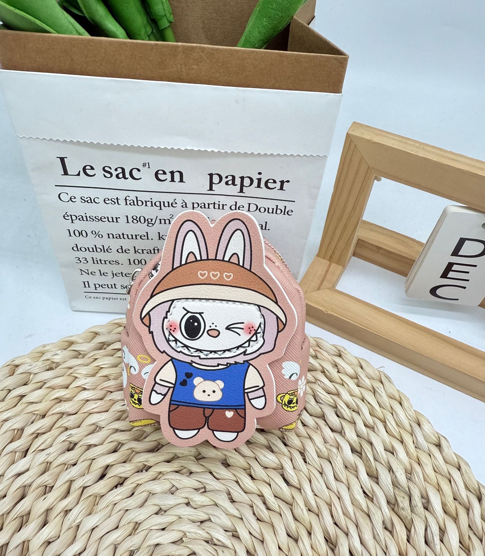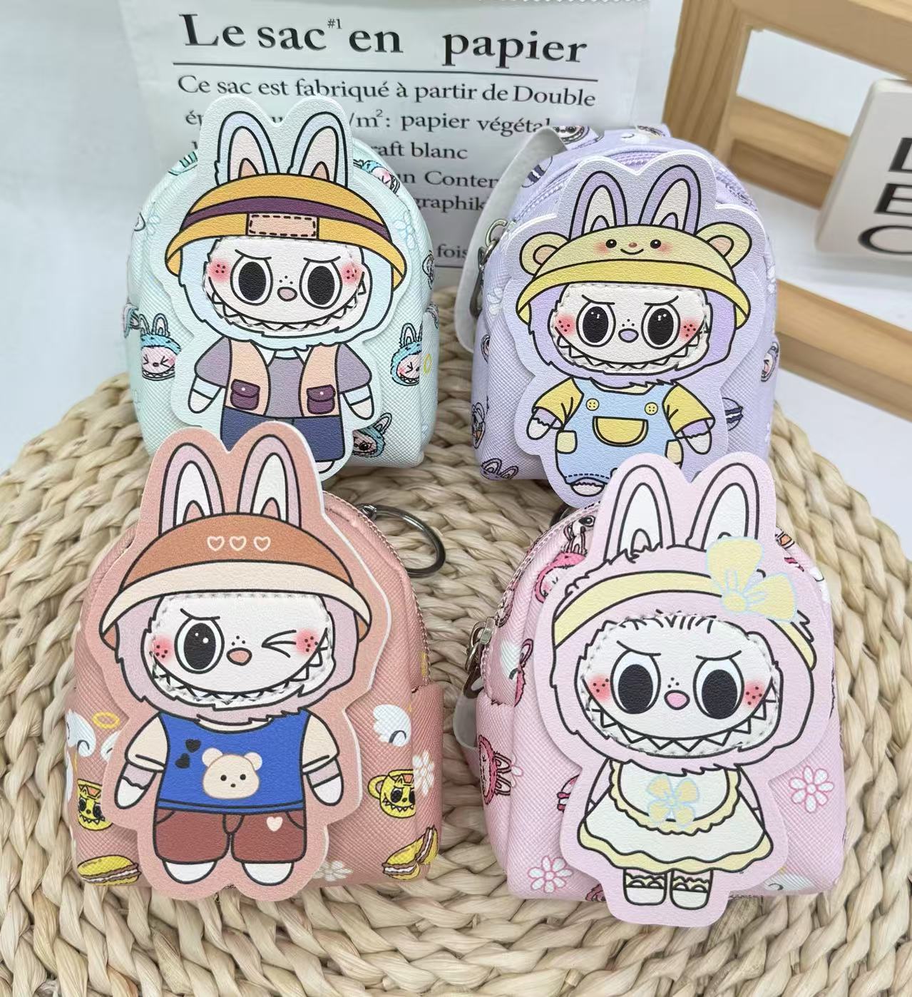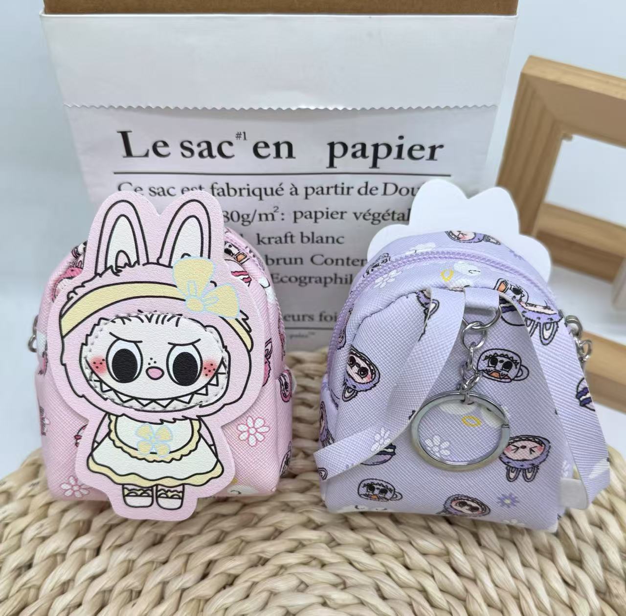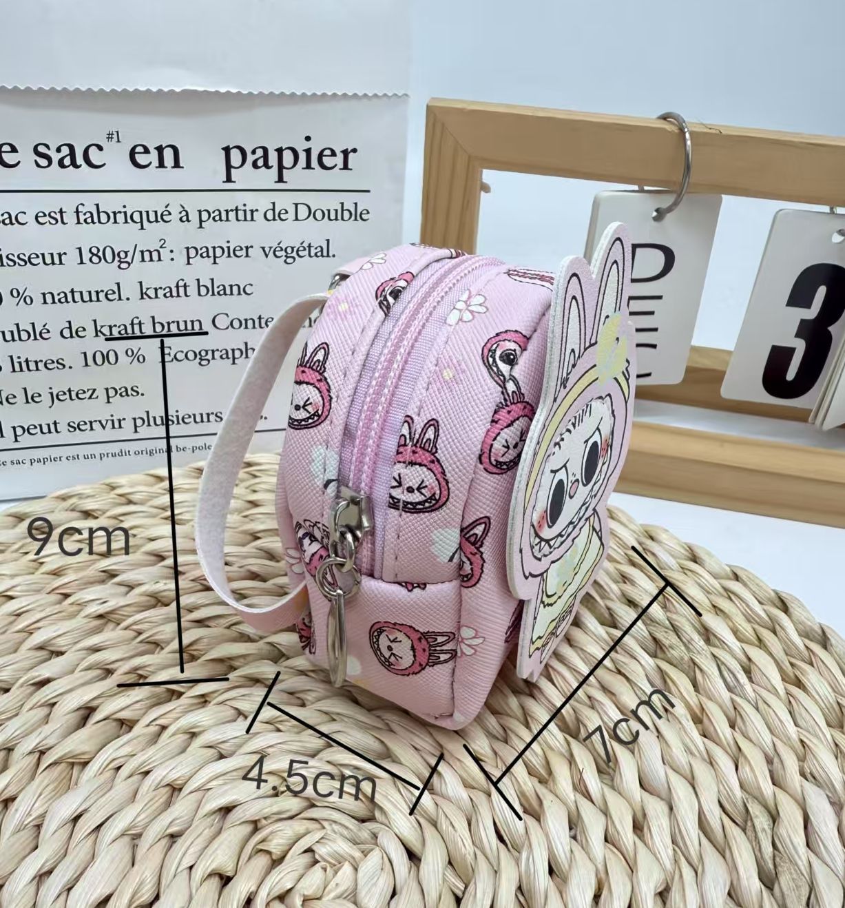 라부부 귀여운 만화 동전 지갑 미니 가죽 가방 열쇠고리 수납 가방 펜던트 예쁜 미니 숄더백