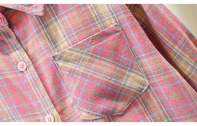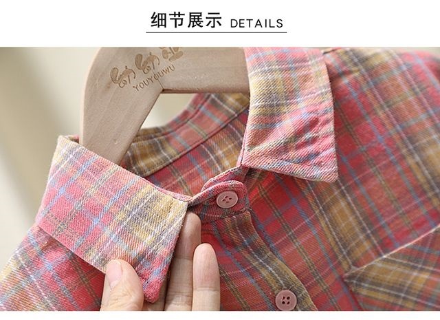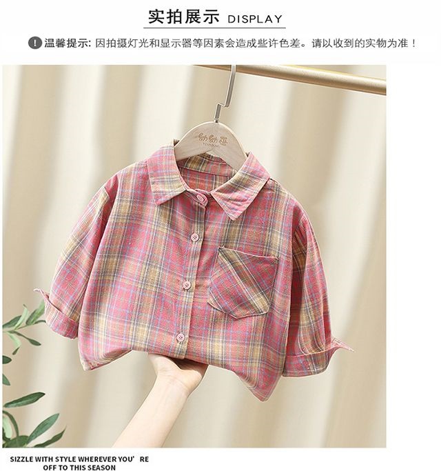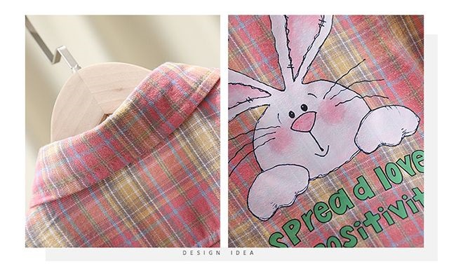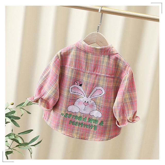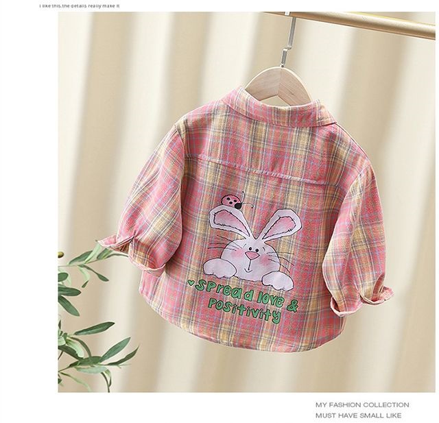 여아 격자 무늬 셔츠 봄과 가을 새로운 스타일 어린이 토끼 얇은 한국 스타일 겉옷 가을 스타일 아기 소녀 긴팔 셔츠스토어 가기
