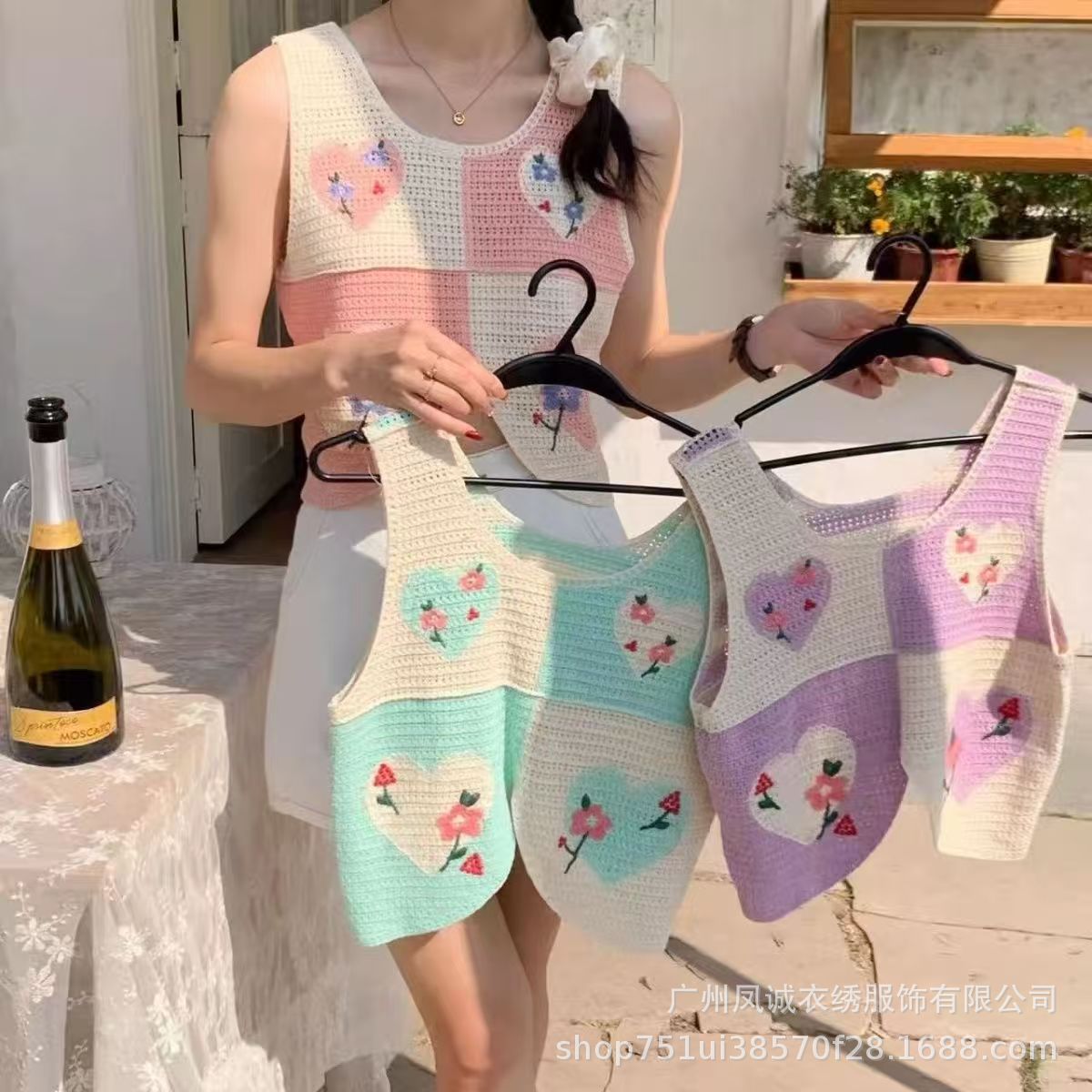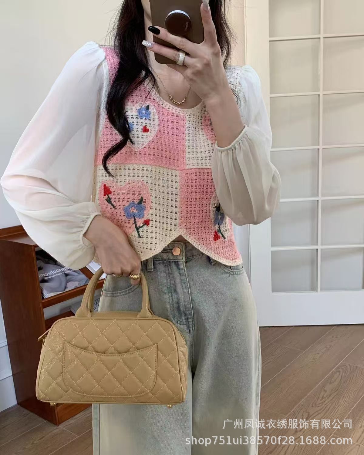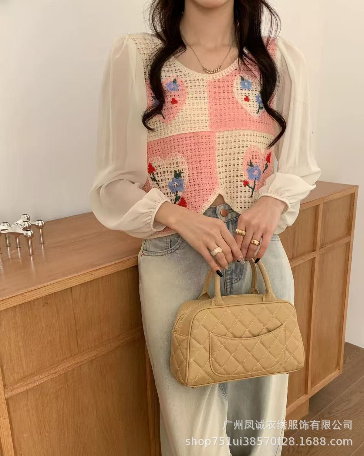 달콤하고 시크하며 서양식 니트 크로셰 스플라이싱 긴팔 여성 신작 봄 여름 투피스 쉬폰 셔츠 탑스토어 가기