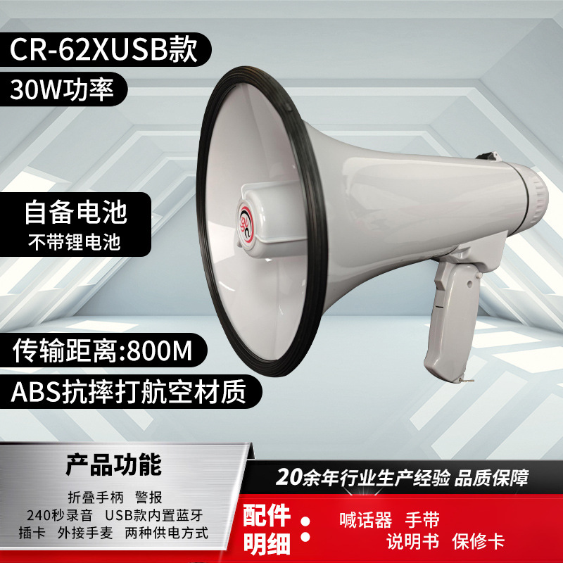 Thunder King CR-62 리튬 배터리 메가폰 고출력 30W 스피커 Bluetooth 녹음 USB 카드 대형 스피커