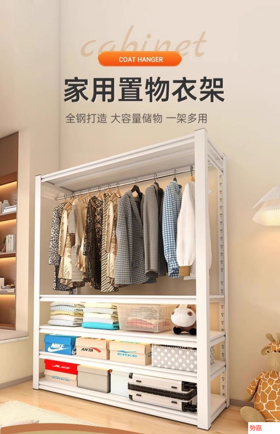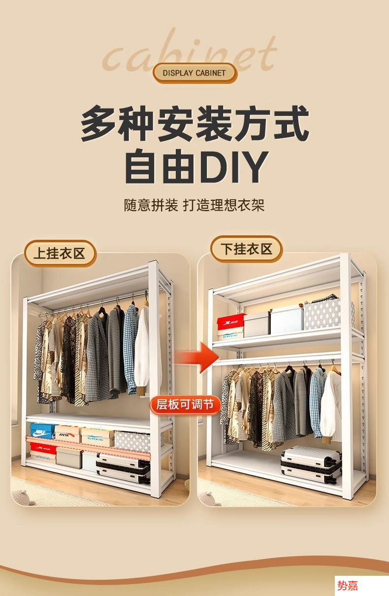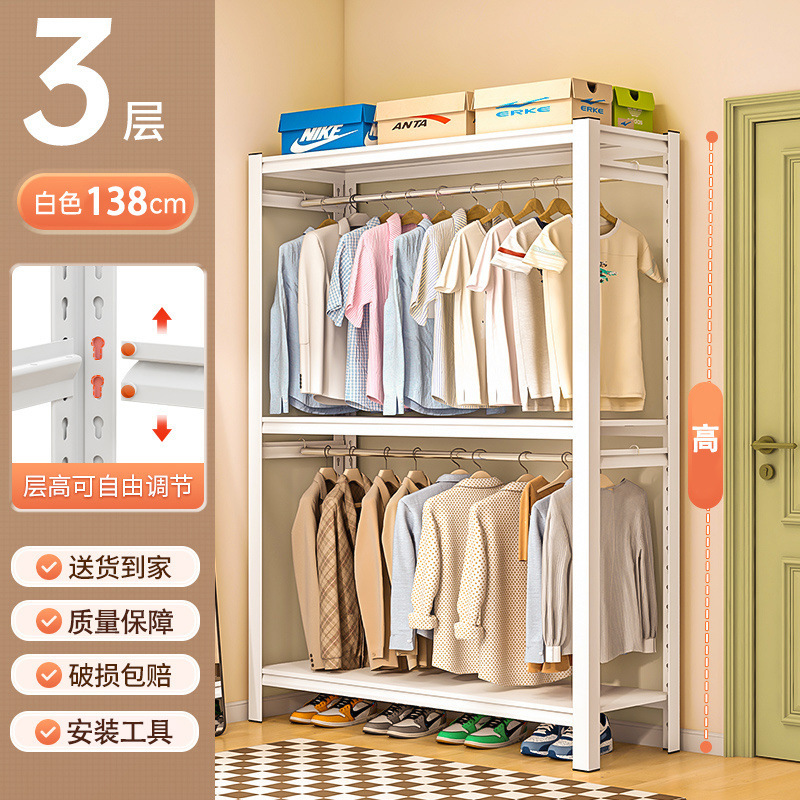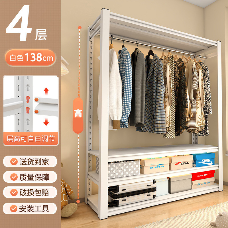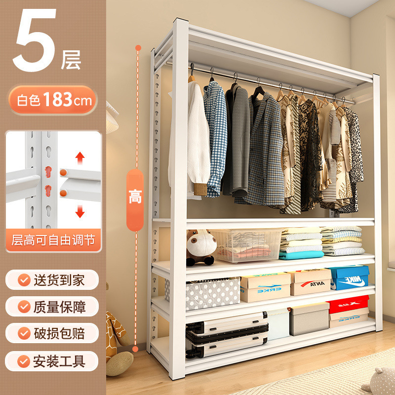 코트 랙 강철 간단한 옷장 바닥에서 천장까지 다층 조절 옷장 침실 임대 주택 철 옷걸이 선반