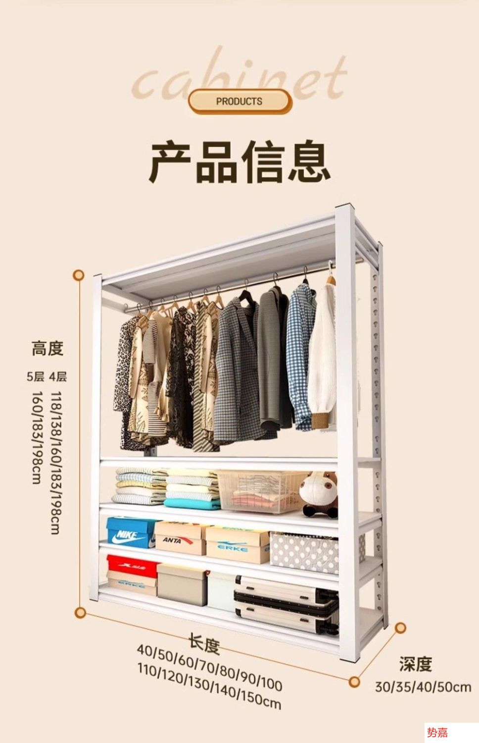 • 160cm의 5개 층 - 층 간격 조절 가능