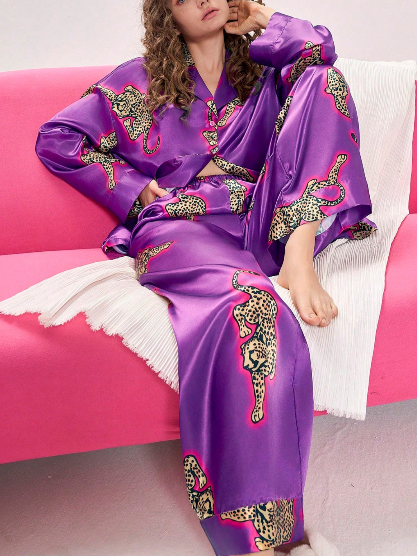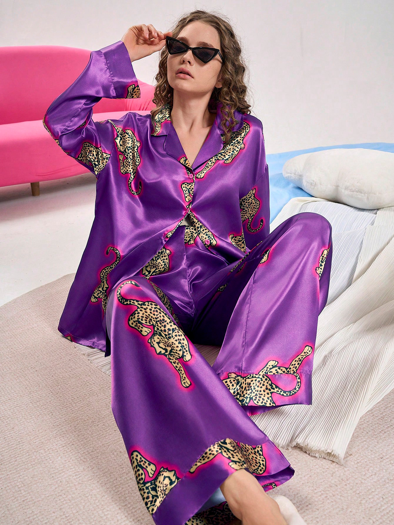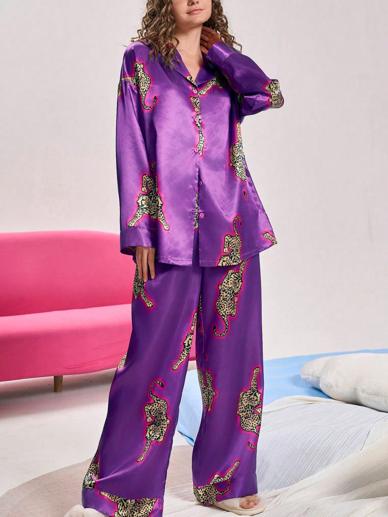 유럽과 미국의 국경 간 2025 가을 AliExpress Amazon 새로운 럭셔리 레오파드 하이 엔드 시뮬레이션 실크 홈웨어 세트스토어 가기