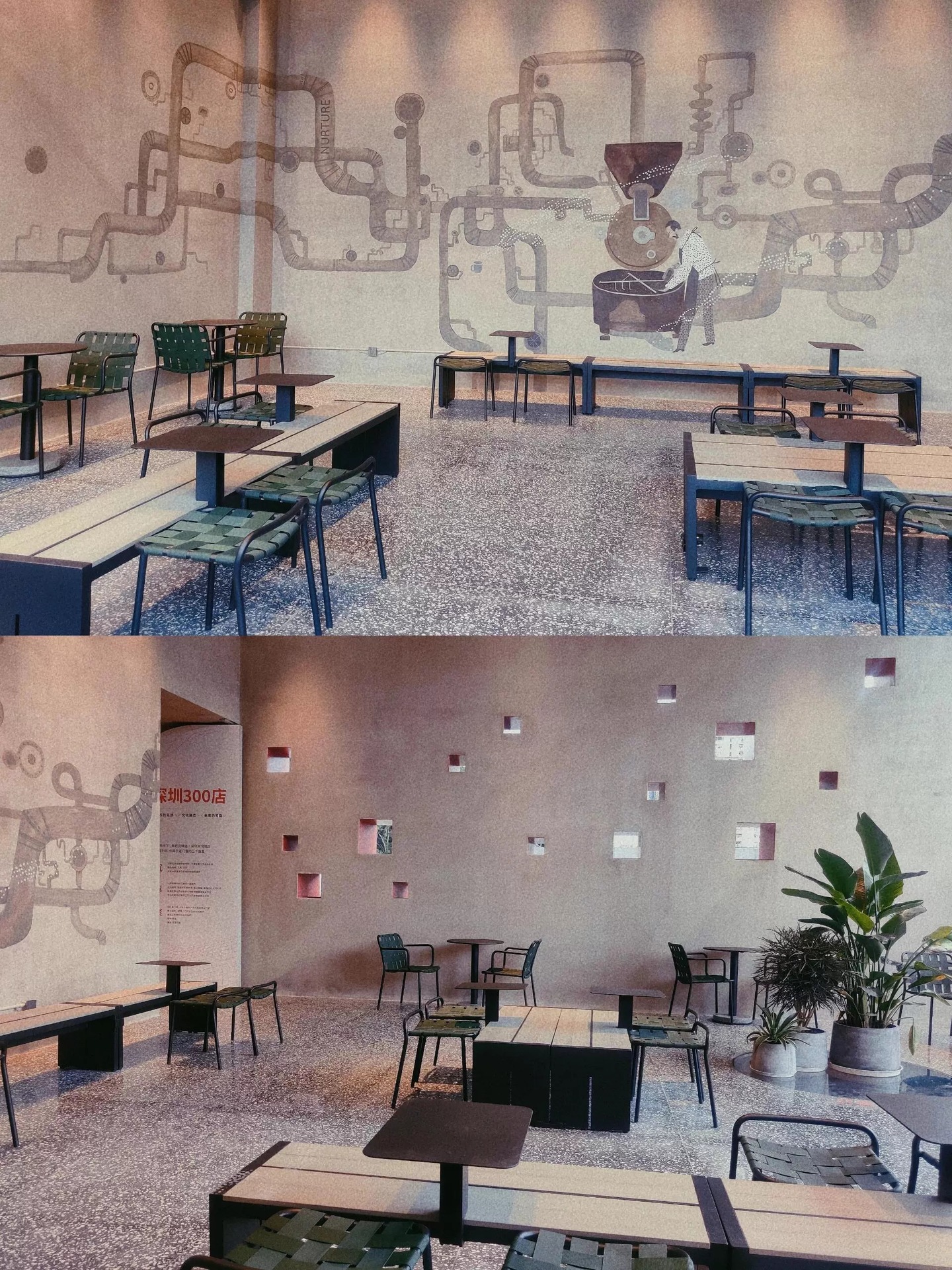 • 테이블 하나와 의자 두 개