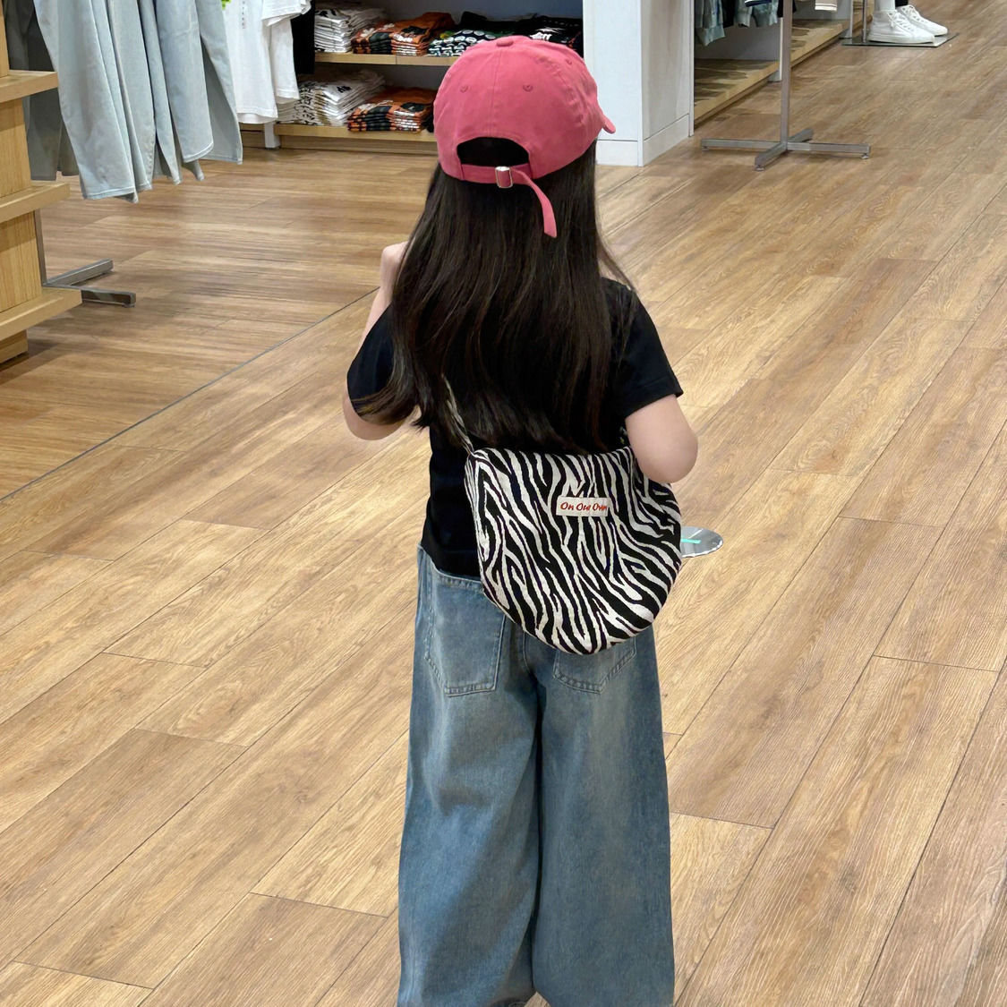여자 프린트 청바지 여름 착용 2025 새로운 한국 스타일 유행 어린이 얇은 바지 여자 아기 여름 스트레이트 바지