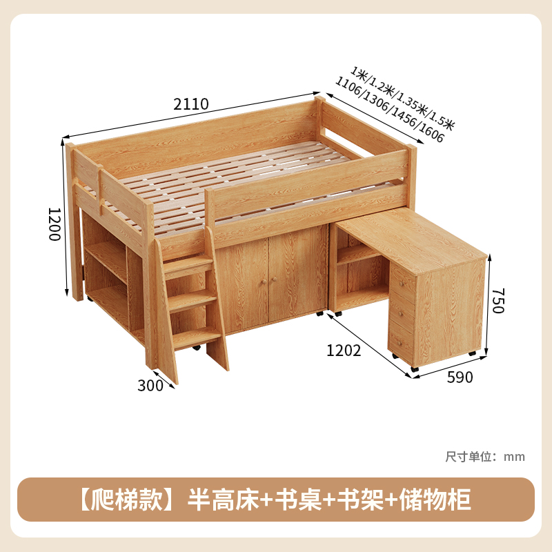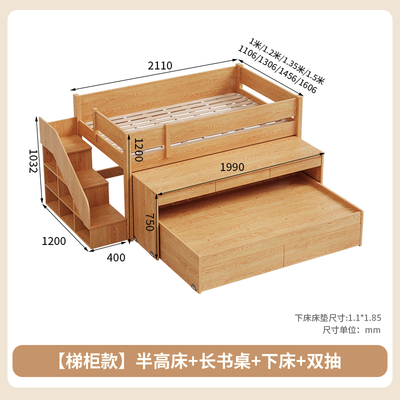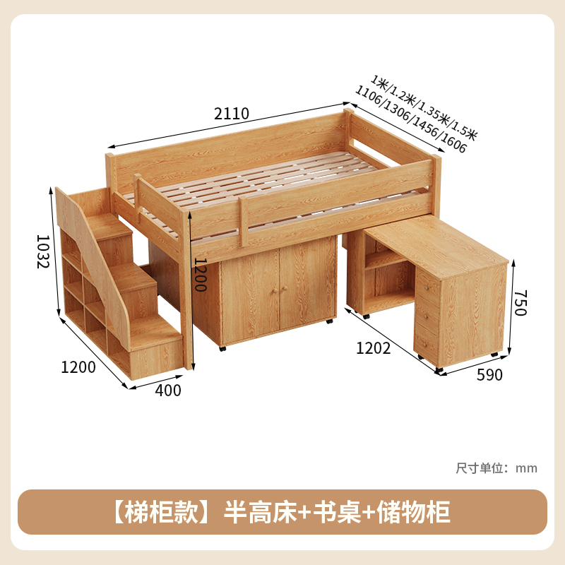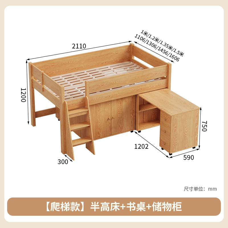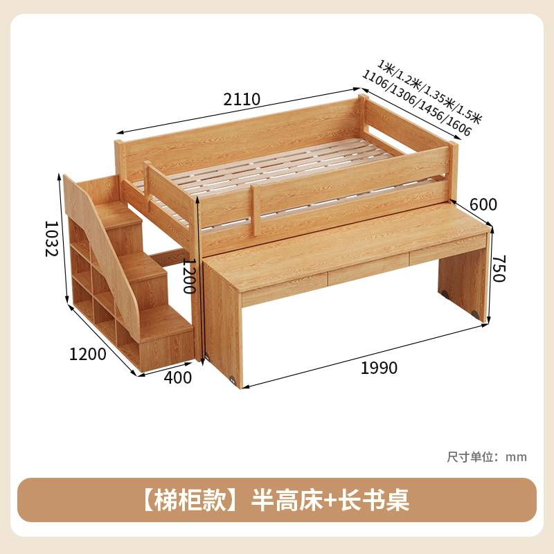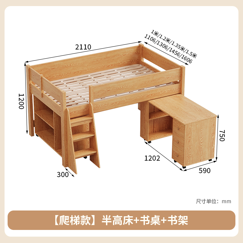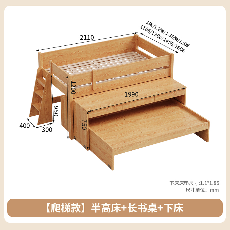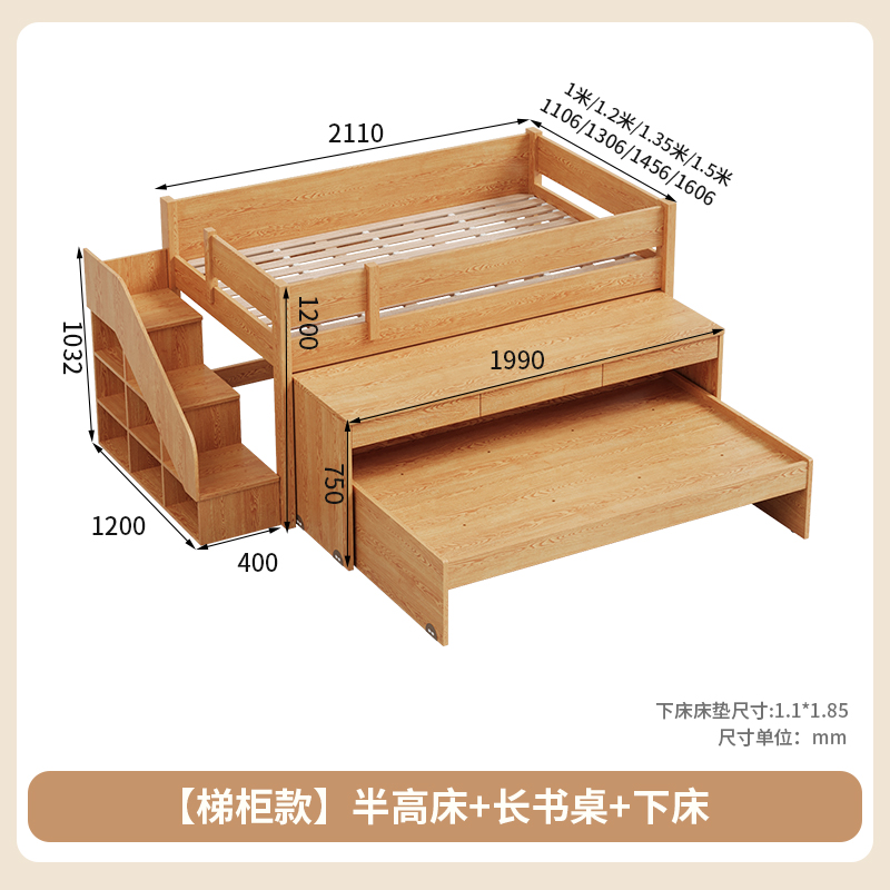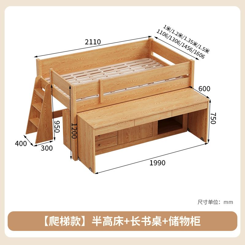 • 사다리형 캐비닛 반높이 침대 + 긴 책상 + 하부 침대