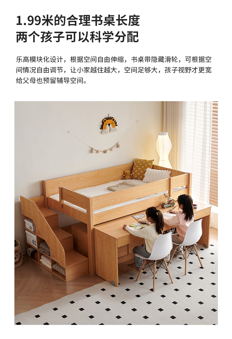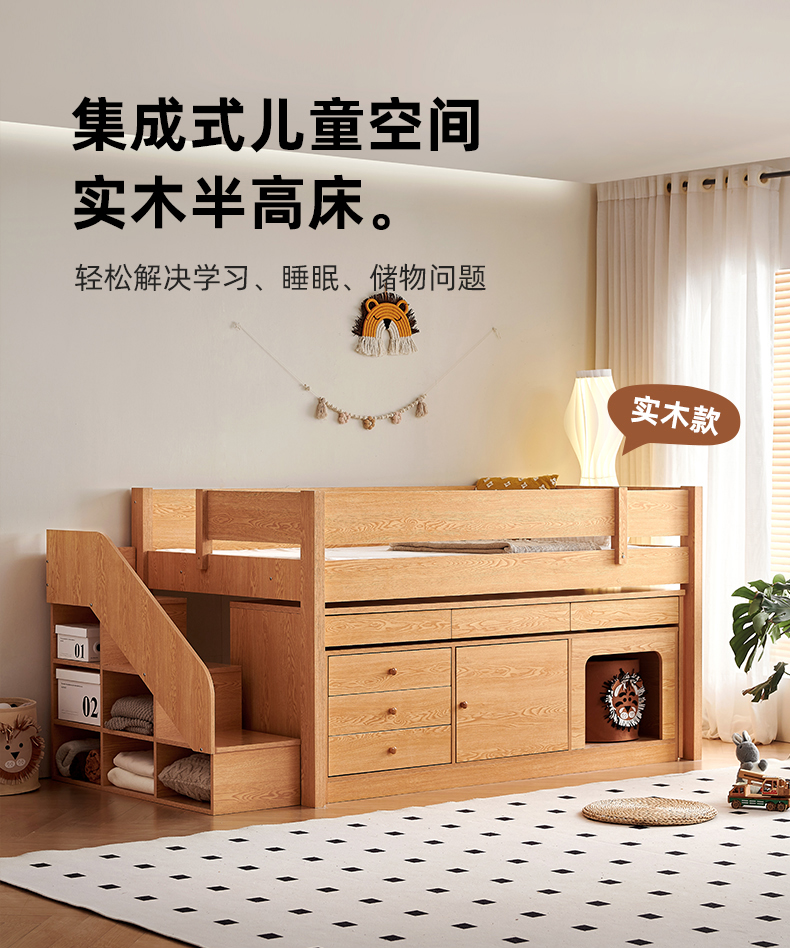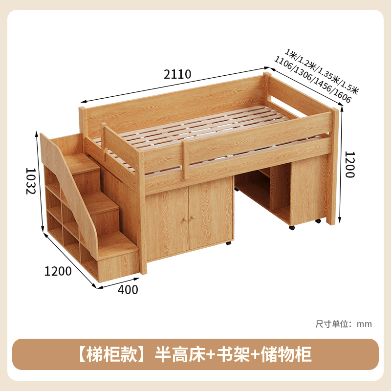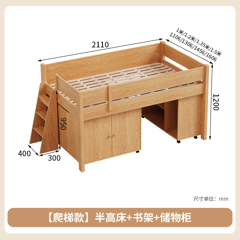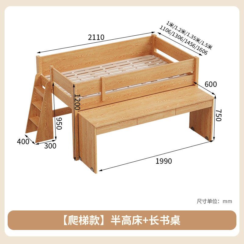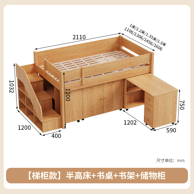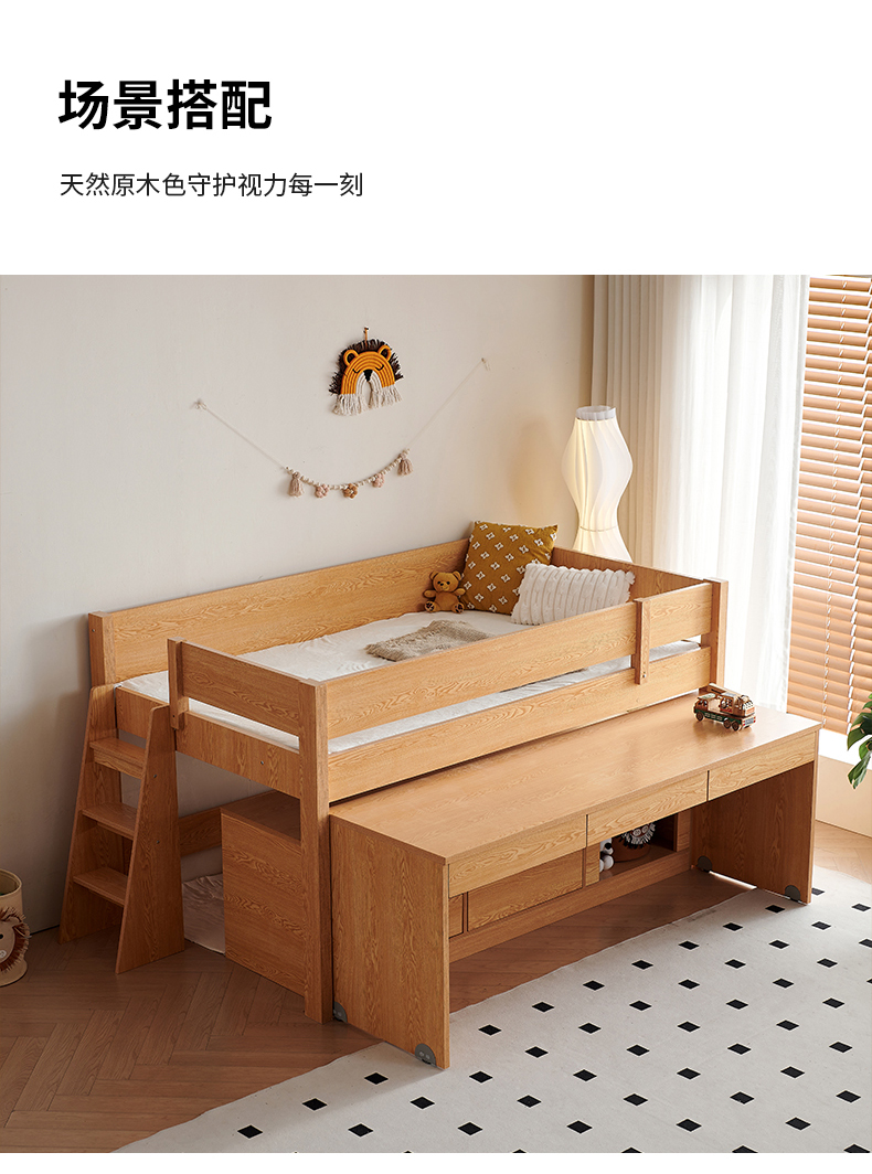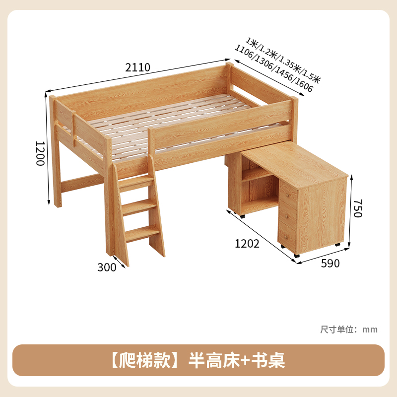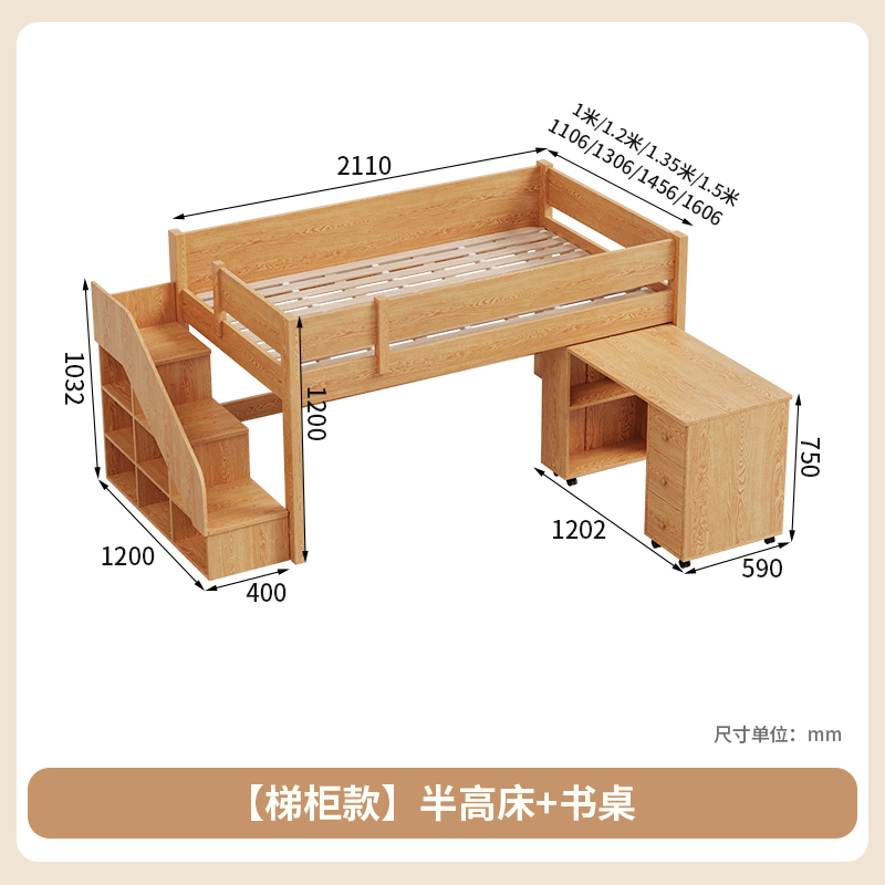 • 사다리형 캐비닛 반높이 침대 + 긴 책상 + 하부 침대