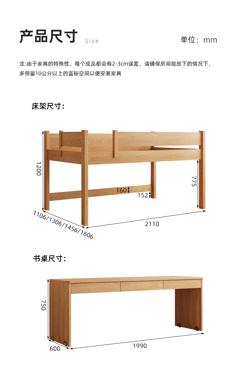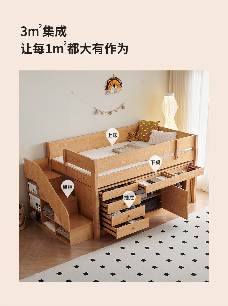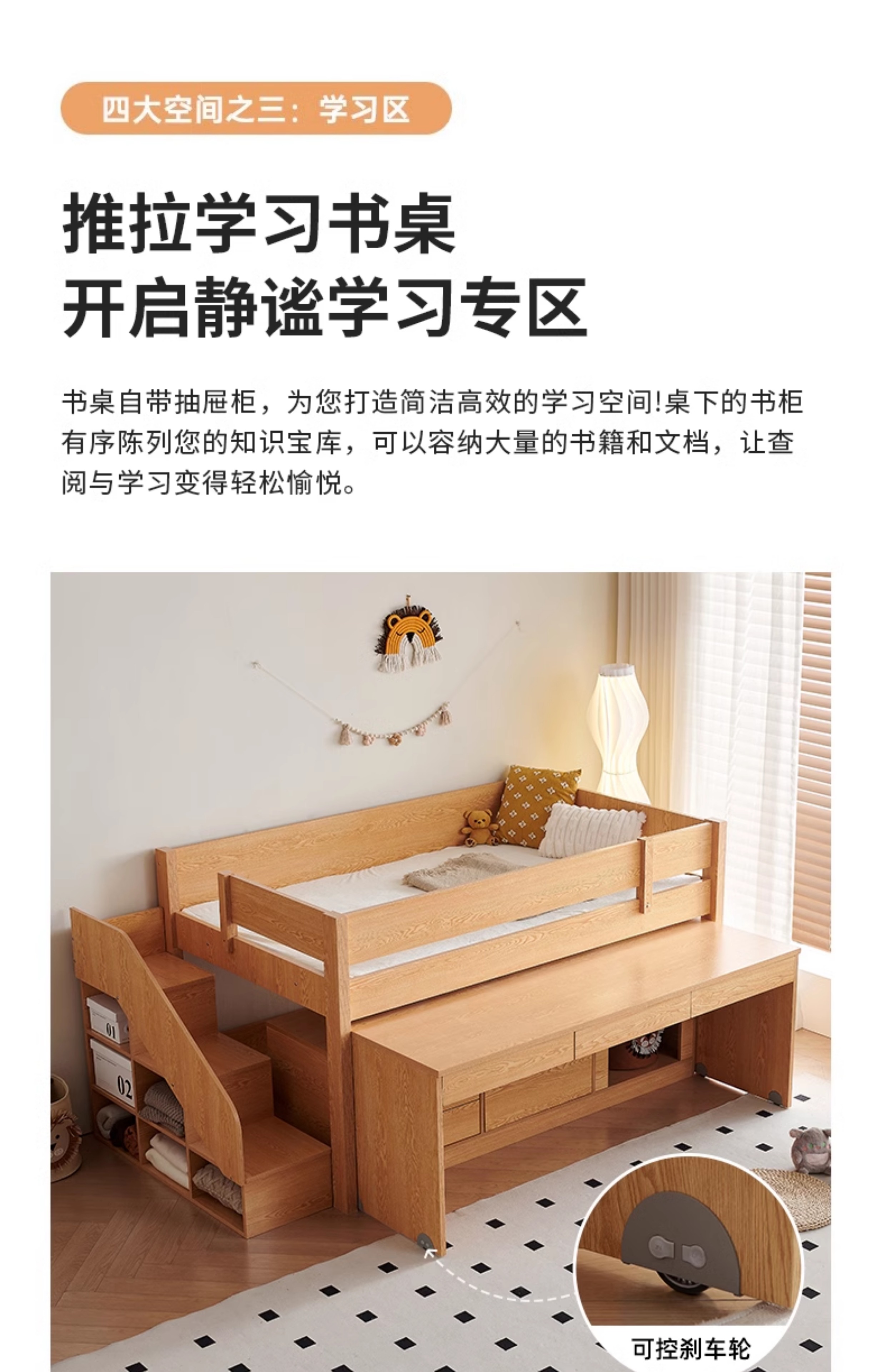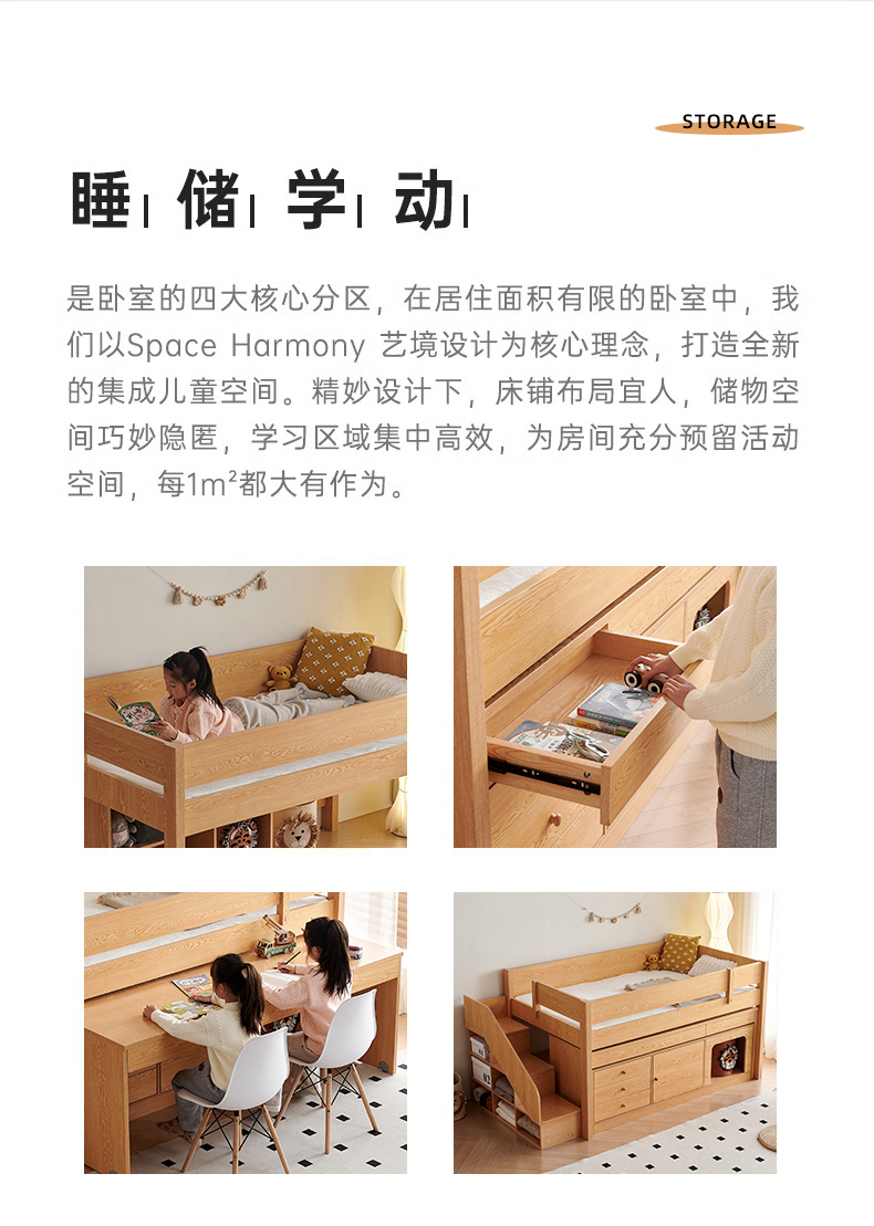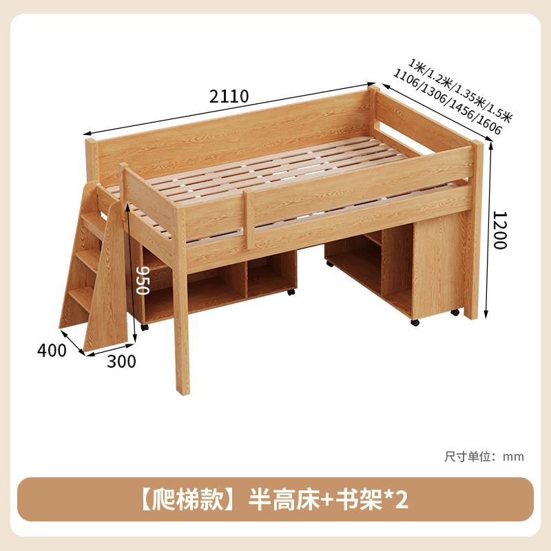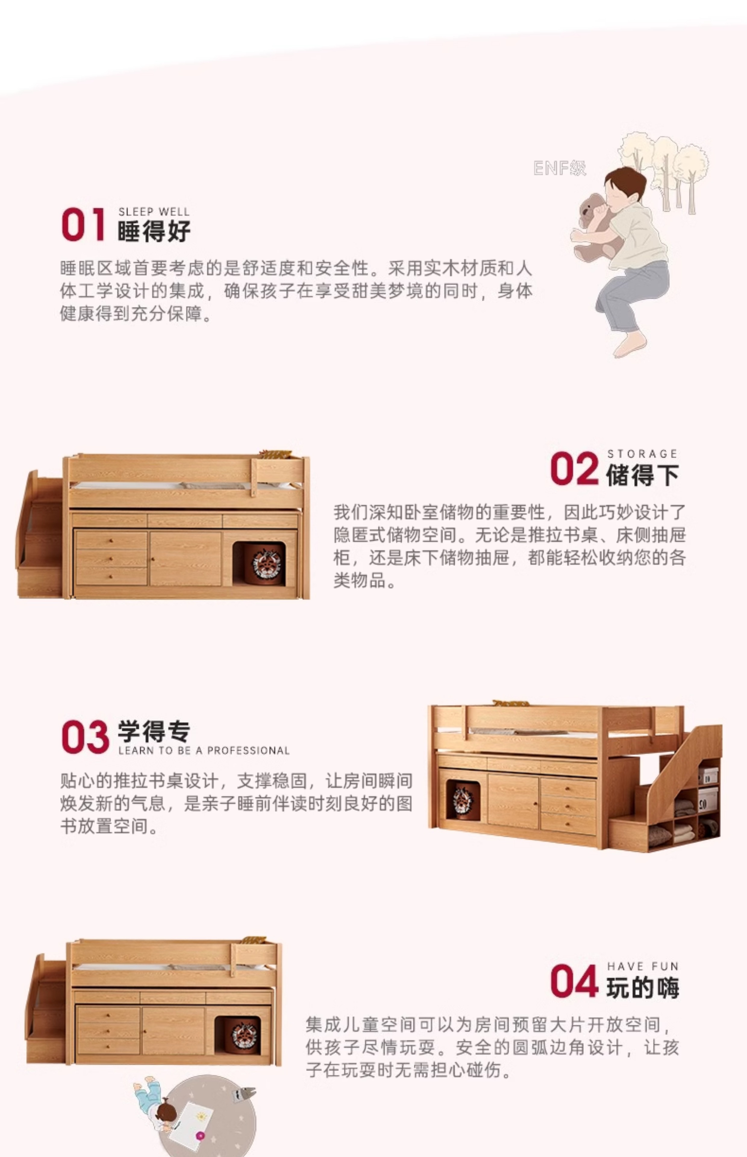 • 사다리형 캐비닛 반높이 침대 + 긴 책상 + 하부 침대