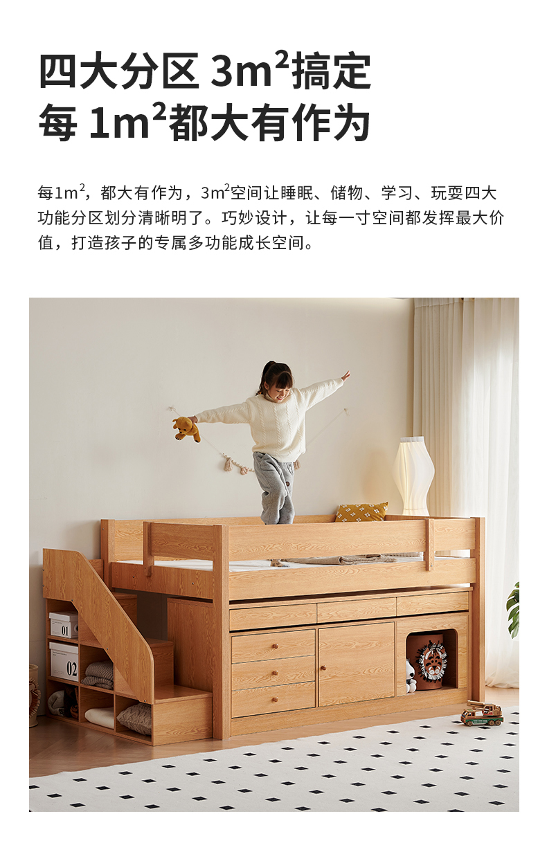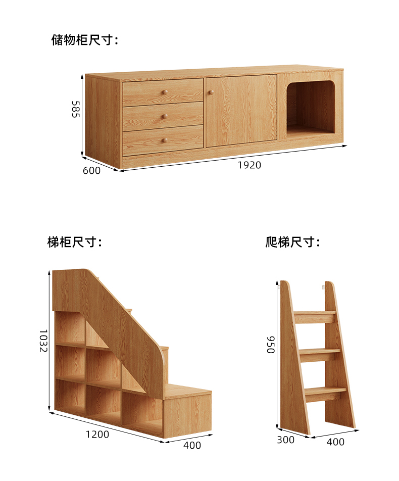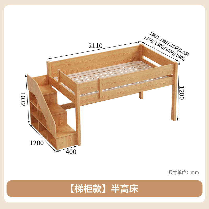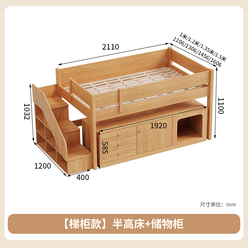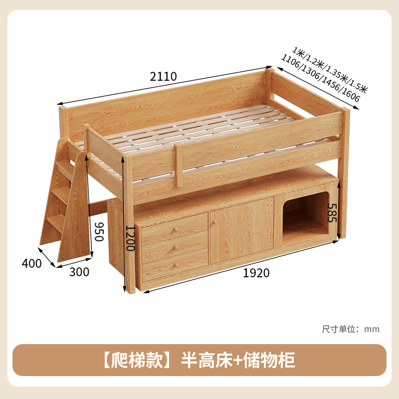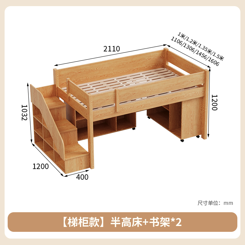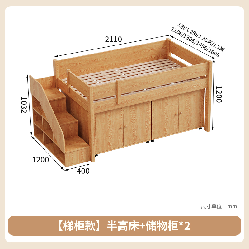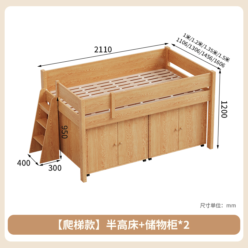 • 사다리 캐비닛 스타일의 절반 높이 침대 + 보관 캐비닛*2