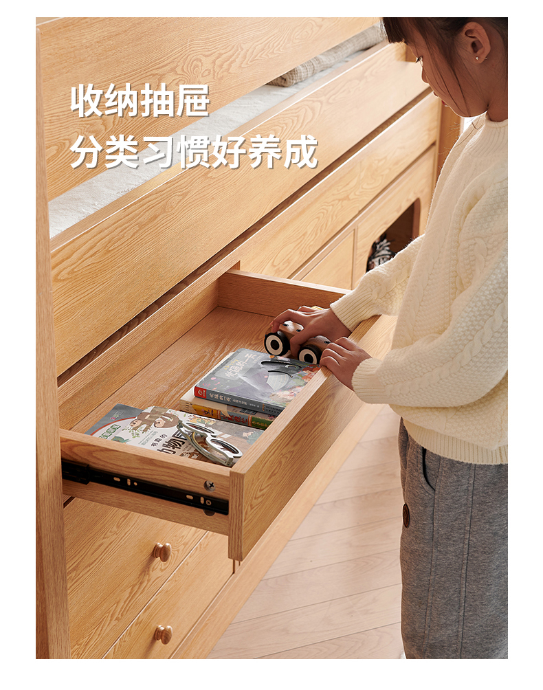 • 사다리장형 반높이 침대 + 긴 책상 + 하부침대 + 이중서랍