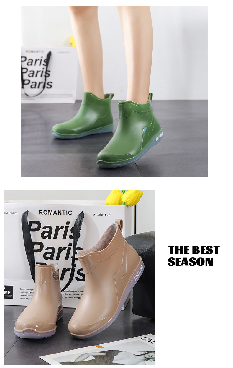 새로운 짧은 장화, 세련된 성인 미끄럼 방지 내마모성 부드러운 밑창 장화, 방수 신발, 주방 작업 고무 신발, 여성용 워터 부츠