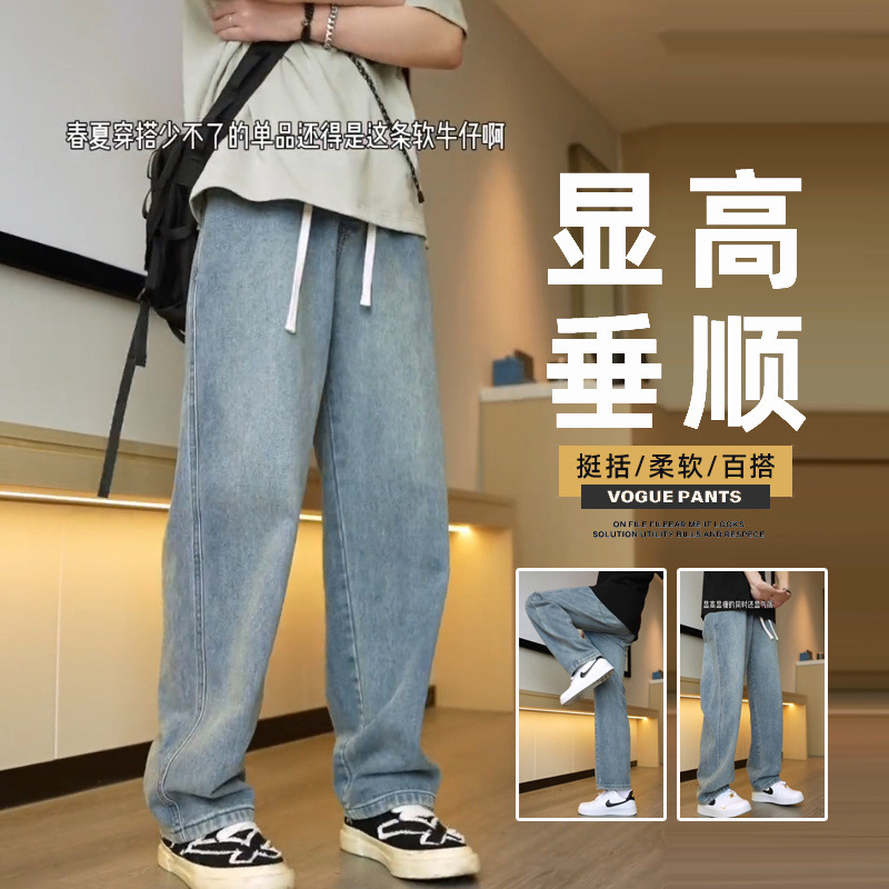 여름 청바지 남성 트렌드 2025 새로운 루즈 스트레이트 소년 패션 다재다능한 미국 하이 스트리트 와이드 팬츠스토어 가기