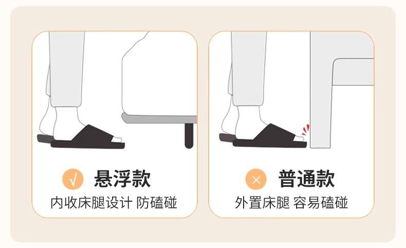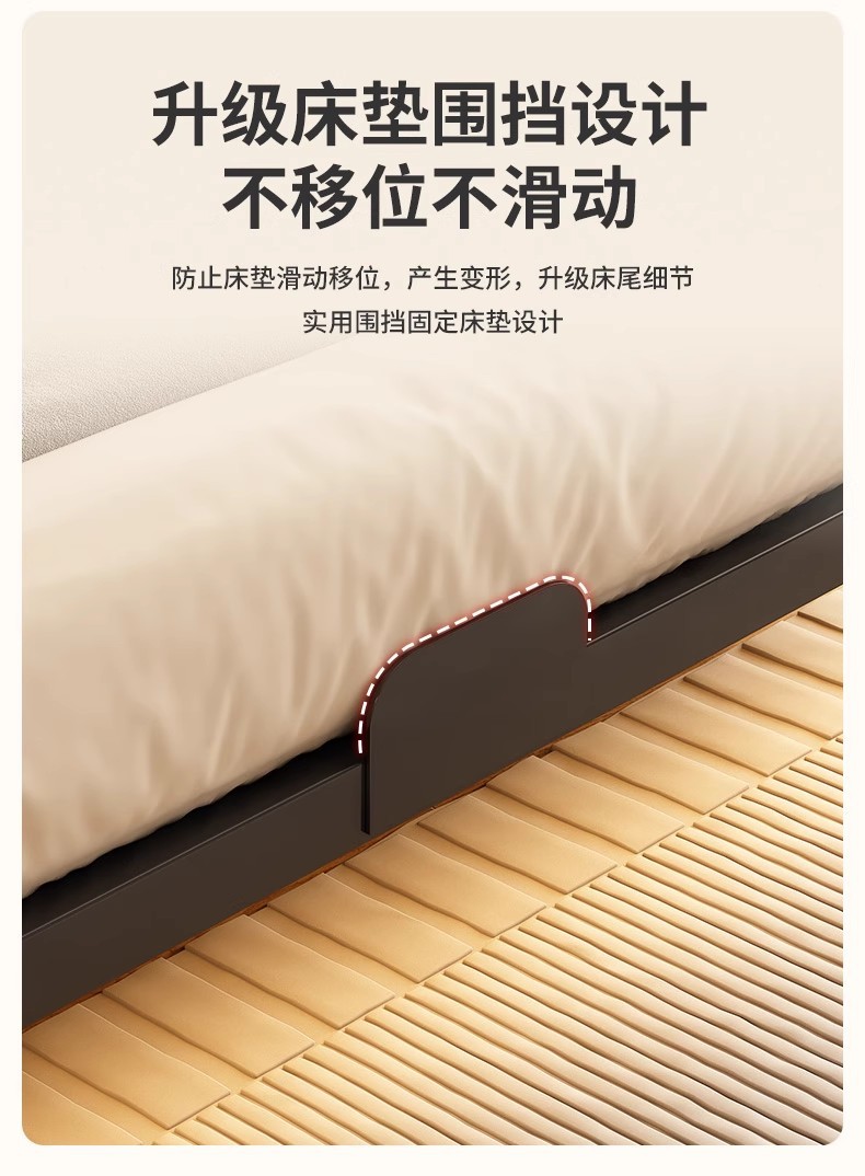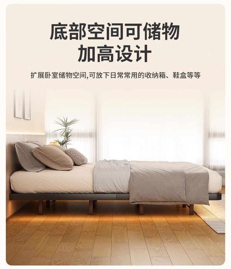 • 탄소강 침대 프레임 + 금속 지지대 + 스마트 센서 라이트 스트립 [크림 화이트]