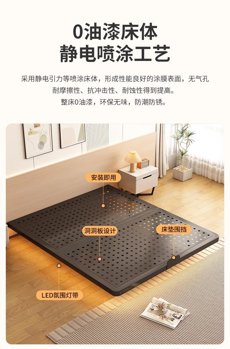 • 탄소강 침대 프레임 + 금속 지지대 + 스마트 센서 라이트 스트립 [고급 블랙]