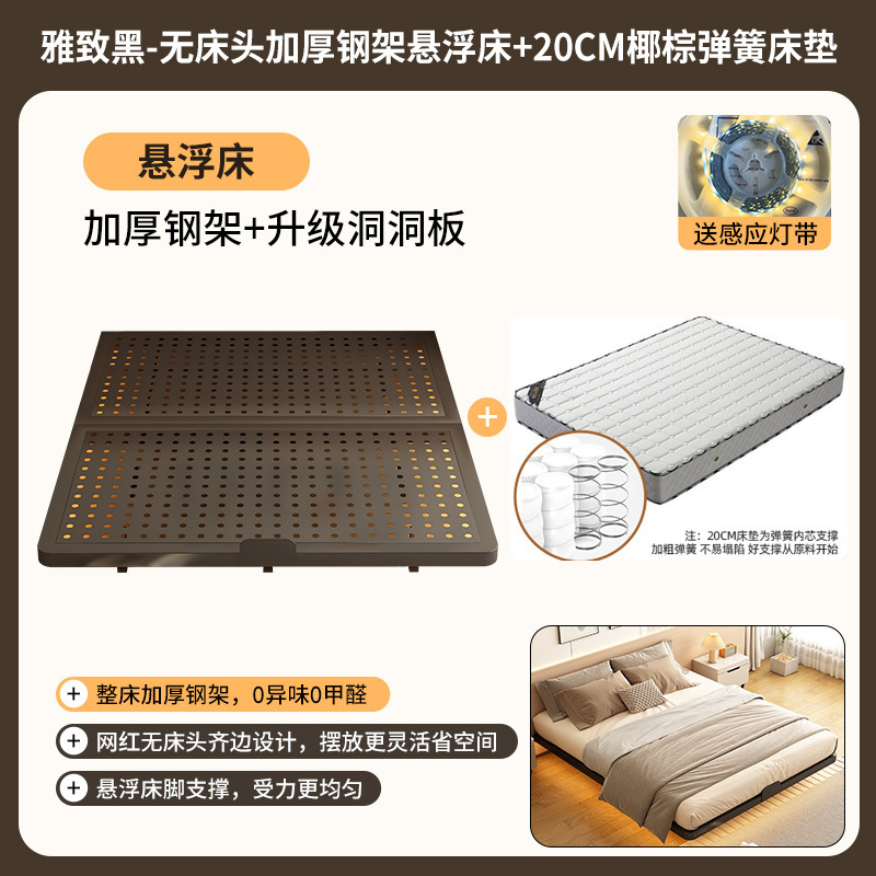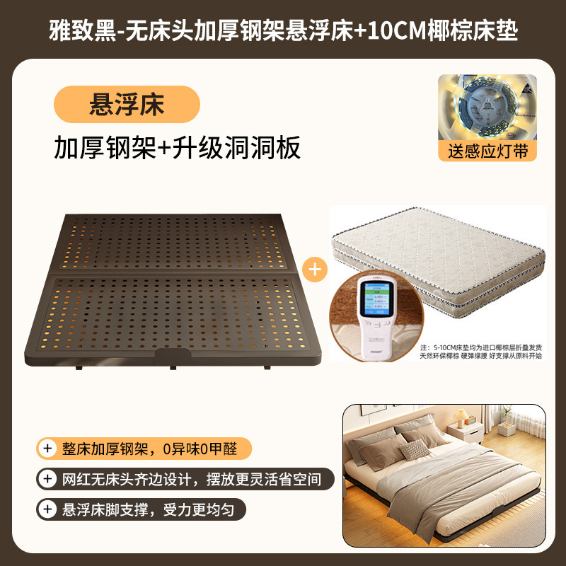 • 탄소강 프레임 침대 + 스마트 센서 라이트 스트립 + 10CM 코코넛 야자 매트리스 [고급 블랙]