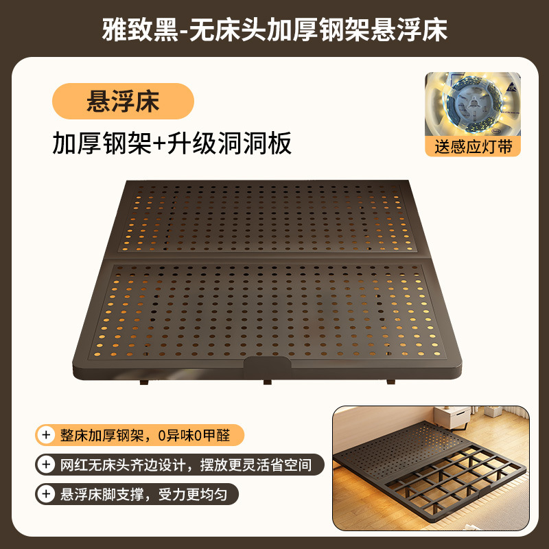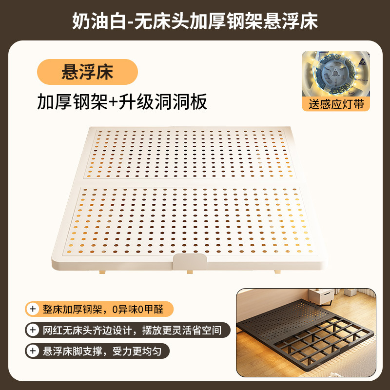 2025 새로운 슬래브 침대 철제 프레임 침대 가정용 스테인레스 스틸 홀 보드 등받이 없음 침대 옆 철제 공중 침대 프레임