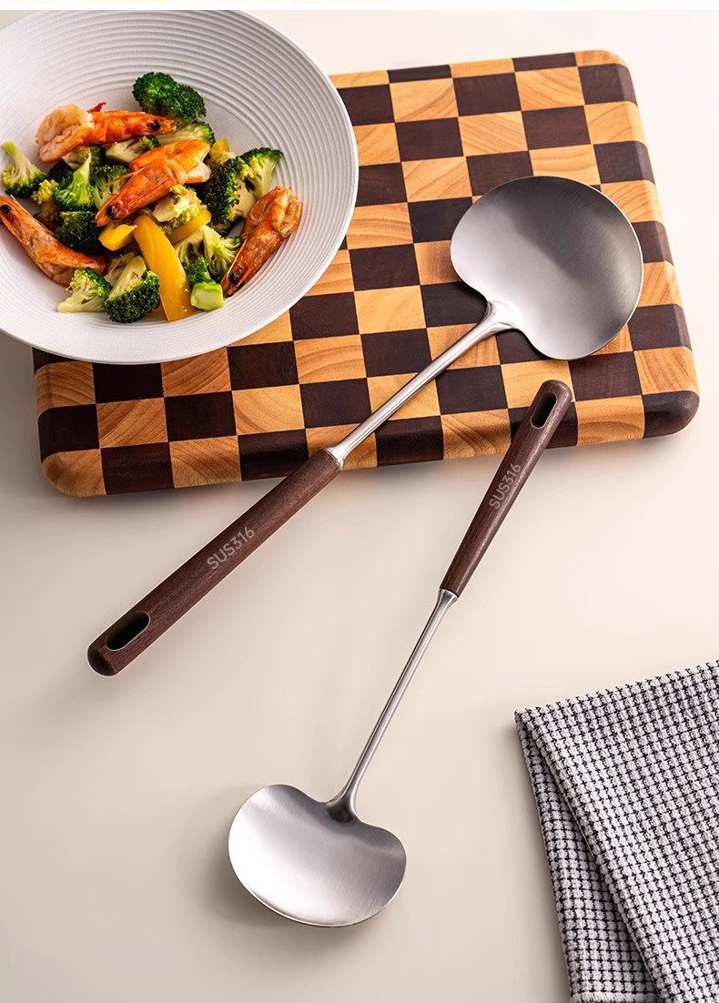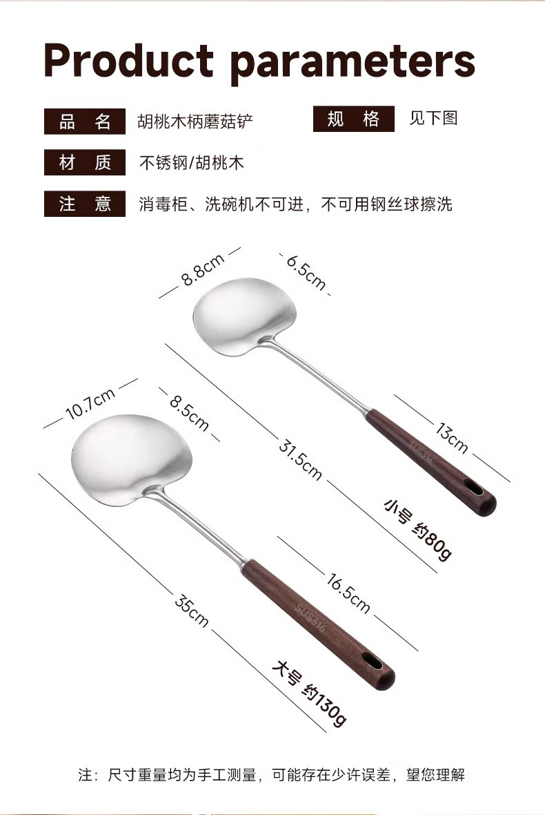 호두 버섯 주걱 304 스테인레스 스틸 주걱 Guizhou 요리 주걱 가정용 나무 손잡이 화상 방지 미니 주걱
